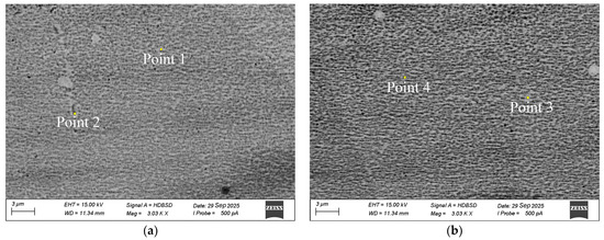 SEM observations were conducted in backscattered electron (BSE) mode at a magnification of 3000×, which provided enhanced atomic-number contrast for distinguishing γ and γ′ phases. Representative regions were analyzed under identical imaging conditions to ensure comparability across all samples.