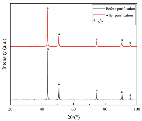 XRD patterns of FGH95 P/M superalloy before and after purification.