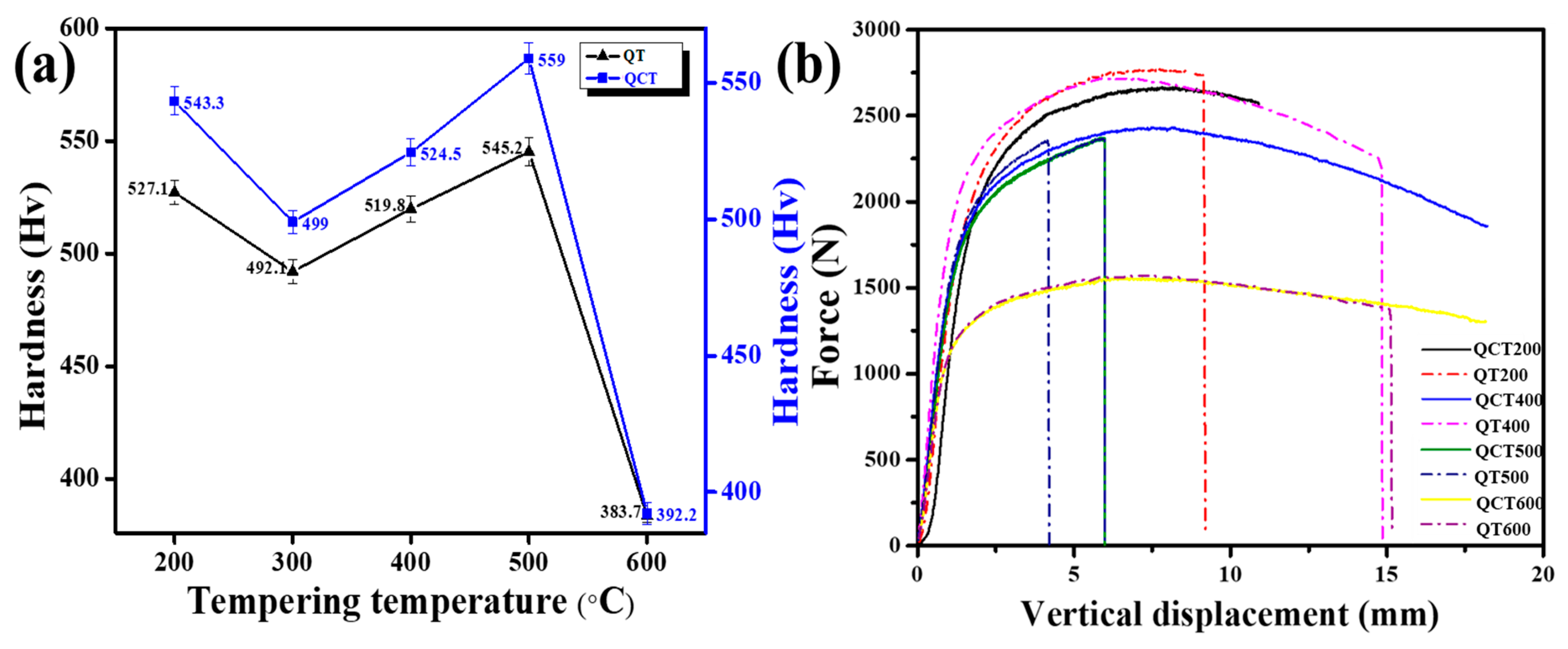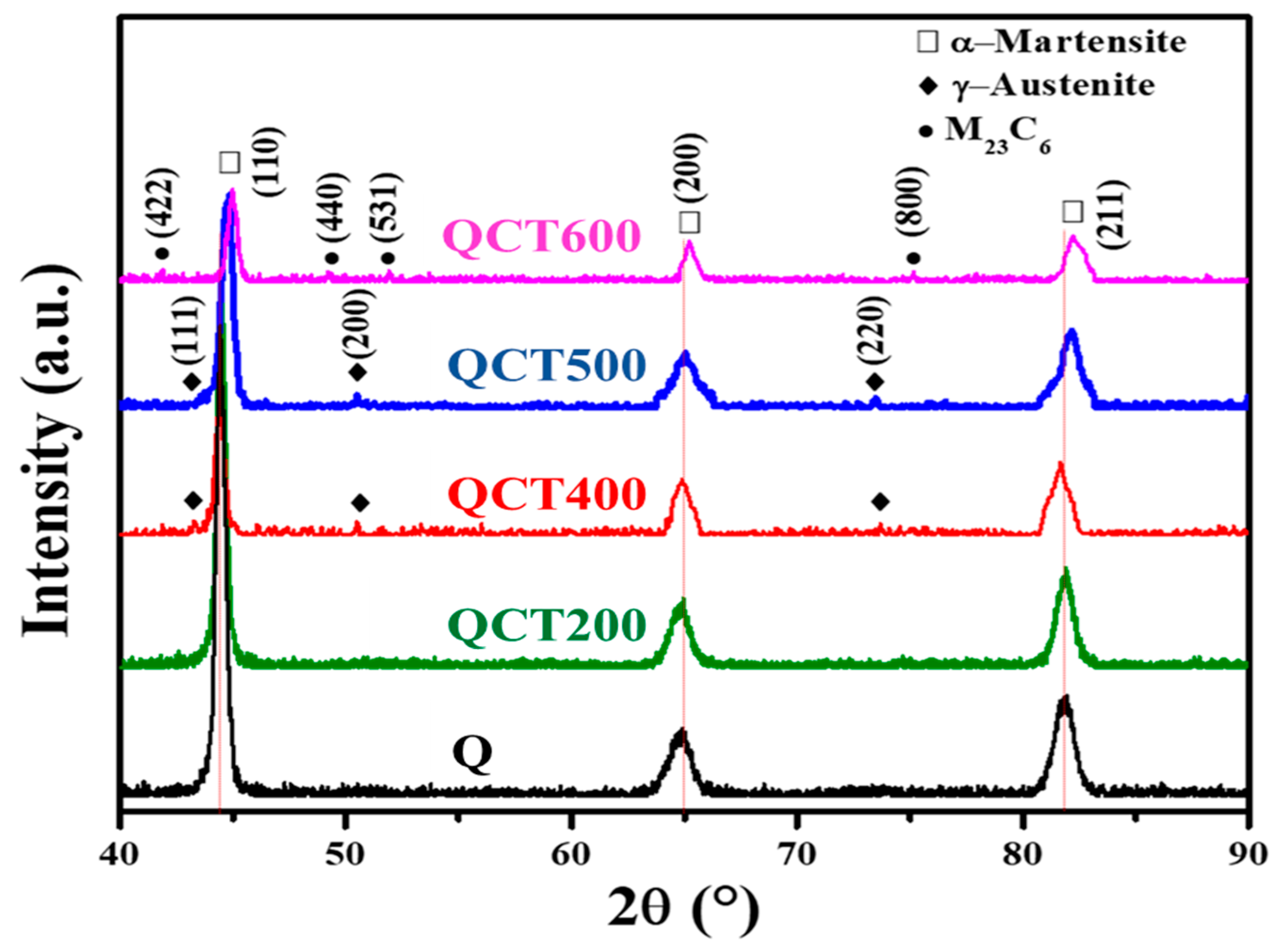 - Weng, Z.; Gu, K.; Zheng, J.; Cui, C.; Zhang, M.; Wang, J. Cryogenically martensitic transformation and its effects on tempering behaviors of bearing steel. Mater. Charact. 2022, 190, 112066. [Google Scholar] [CrossRef]