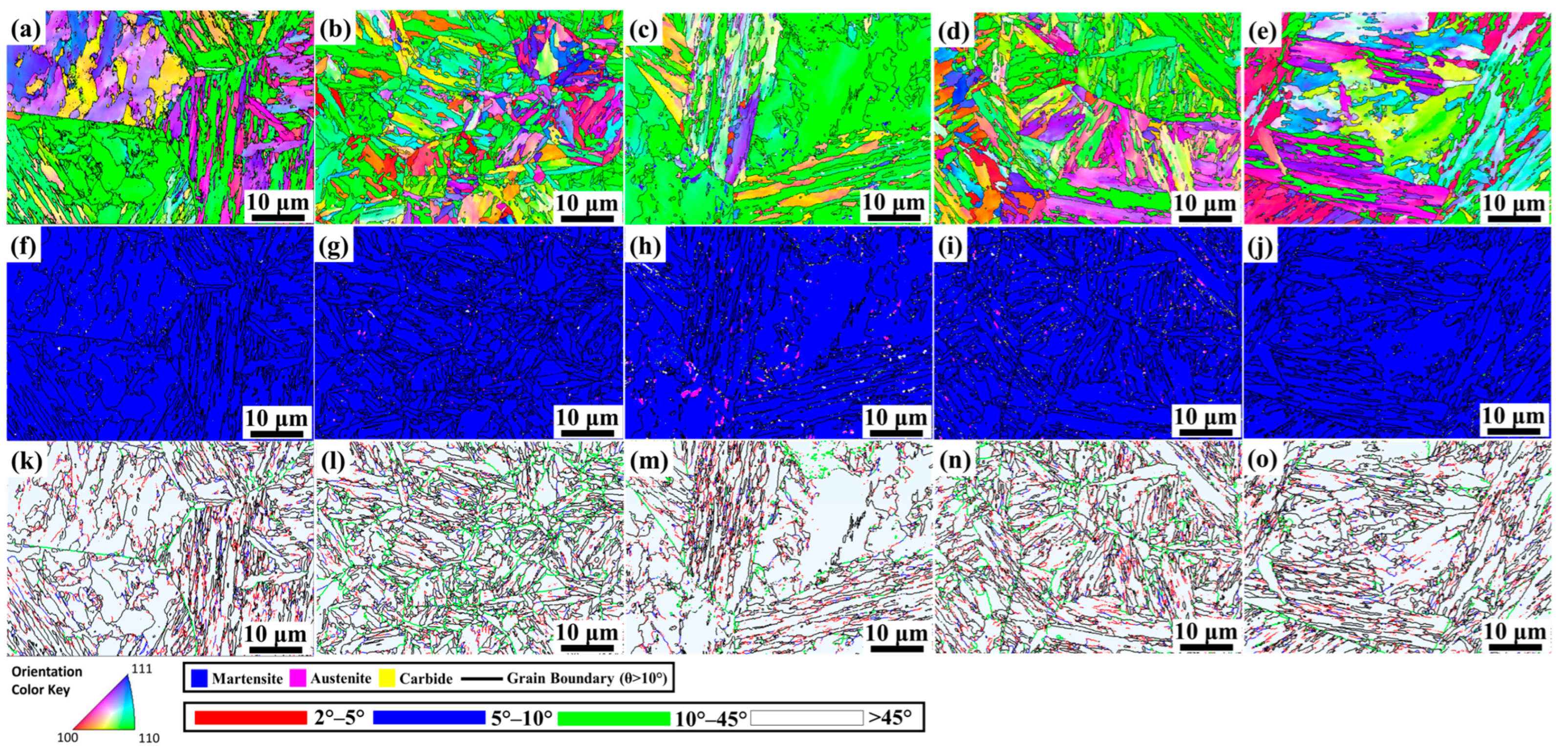 APA StyleFatih, M. R. R., Chen, H.-J., Lin, K.-M., & Lin, H.-C. (2025). Effect of Tempering Temperature on Carbide Evolution and Mechanical Response of Deep Cryogenically Treated Martensitic Stainless Steel. Metals, 15(10), 1152. https://doi.org/10.3390/met15101152