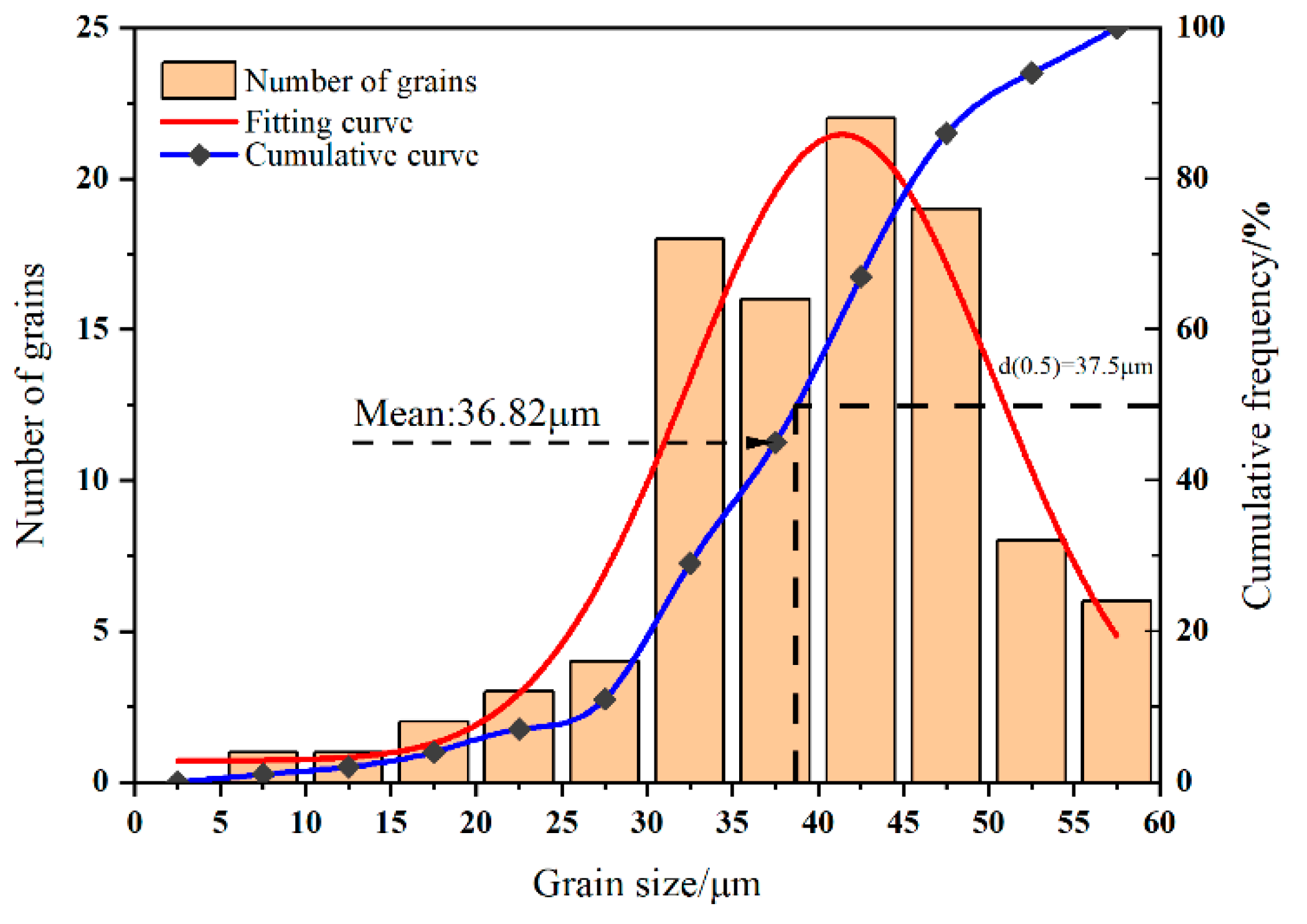 3.4. Evolution of Grain Size of W-La Alloy at Different Annealing Temperatures