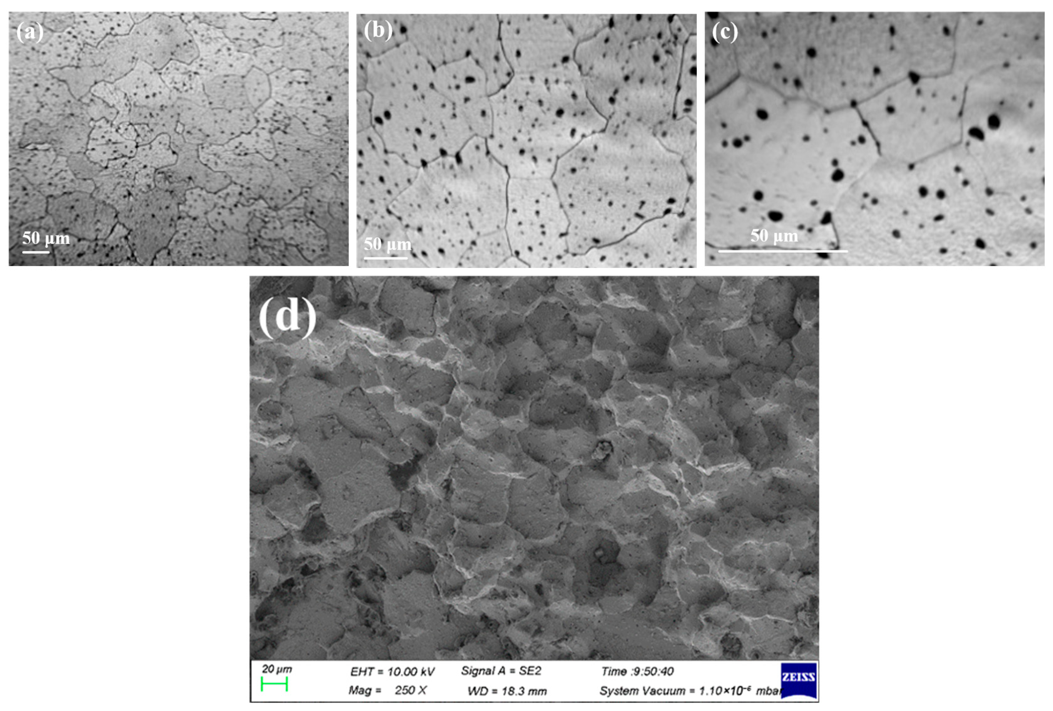 3.5. Effect of Different Annealing Temperatures on Hardness of W-La Alloy