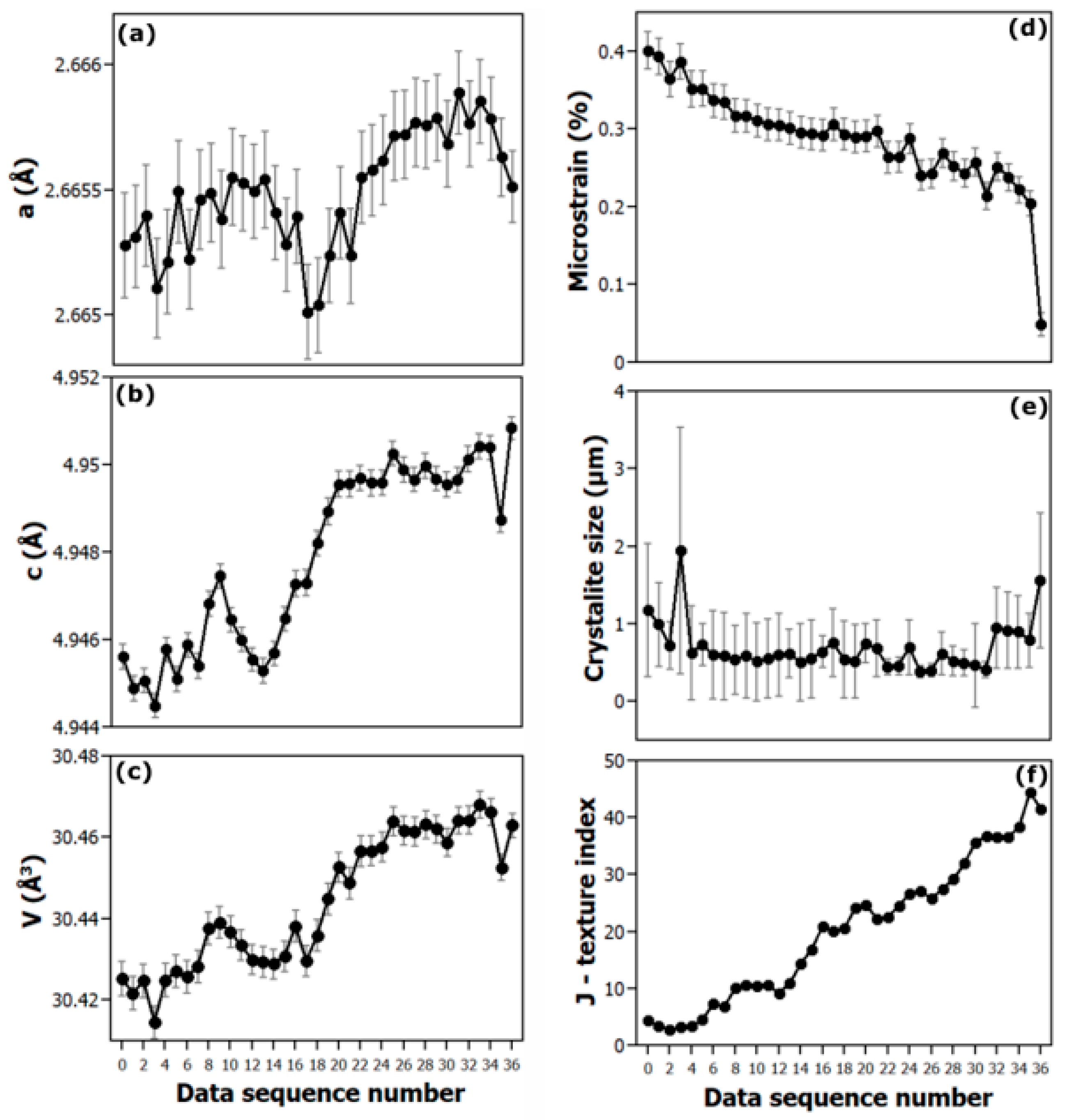 - Rietveld, H.M. A Profile Refinement Method for Nuclear and Magnetic Structures. Appl. Crystallogr. 1969, 2, 65–71. [Google Scholar] [CrossRef]