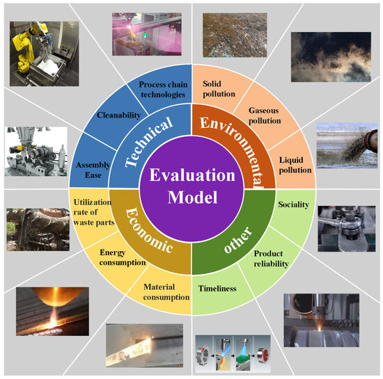 Technical feasibility primarily concerns the difficulty, efficiency, and viability of process chain technologies such as disassembly, cleaning, reprocessing (e.g., laser-based restoration), and reassembly. Economic viability encompasses the cost–benefit relationship within the remanufacturing process, involving factors such as the profit margin of remanufactured products, energy and material consumption, utilization rate of end-of-life core components, processing costs, product profitability, operational and administrative expenses, and pollution control or abatement costs. Environmental impact (green performance) is assessed through metrics related to resource conservation (energy and materials) and the quantification of pollution levels generated throughout the entire life cycle of remanufacturing. Additional considerations include social factors, product reliability, and timeliness.