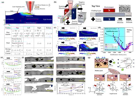 - Hu, Y.; Wang, L.; Yao, J.; Xia, H.; Li, J.; Liu, R. Effects of electromagnetic compound field on the escape behavior of pores in molten pool during laser cladding. Surf. Coat. Technol. 2020, 383, 125198. [Google Scholar] [CrossRef]