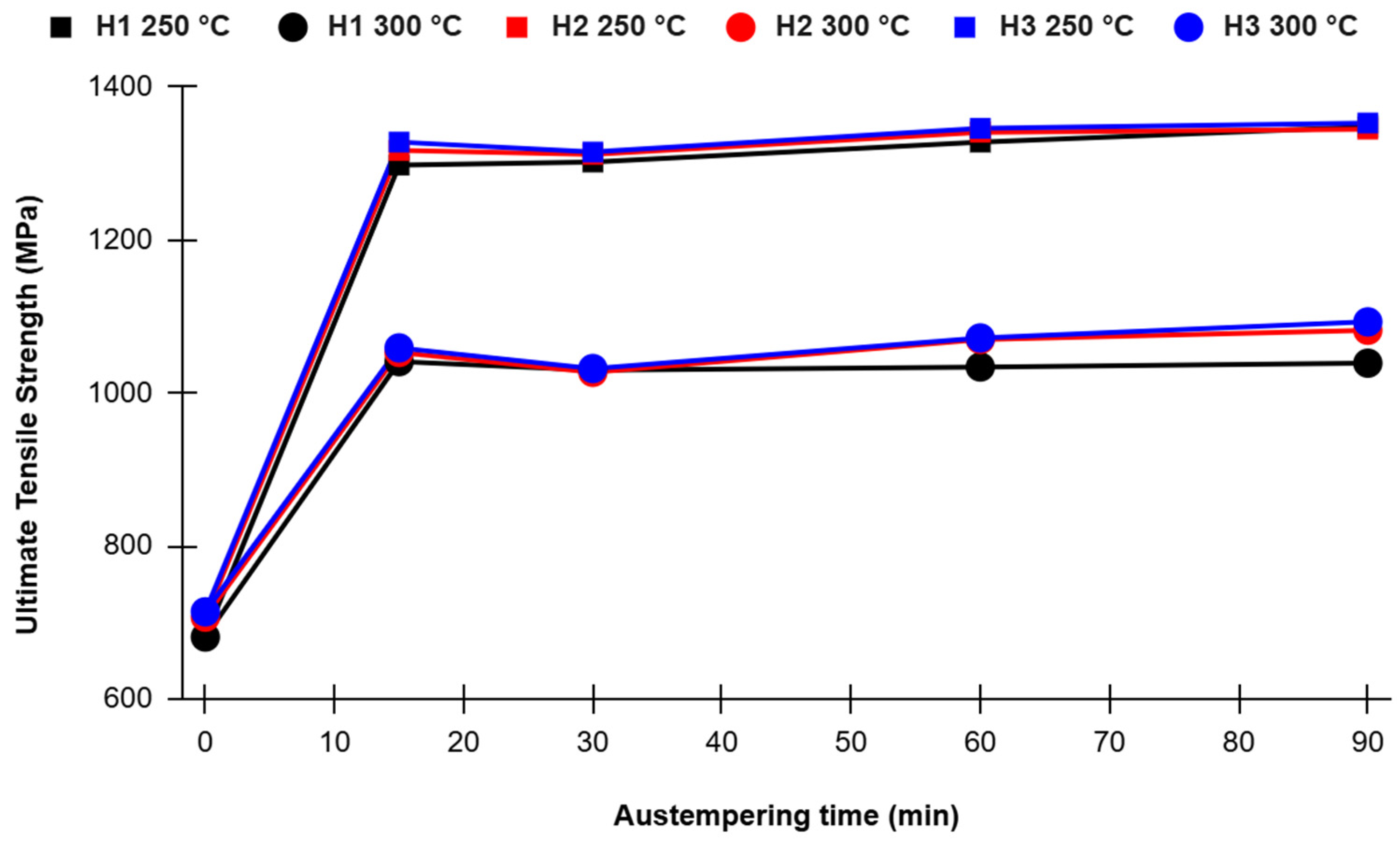 - Abdullah, B.; Alias, S.K.; Jaffar, A.; Rashid, A.A.; Ramli, A. Tensile Strength Properties of Niobium Alloyed Austempered Ductile Iron on Different Austempering Temperature. Adv. Mater. Res. 2012, 457, 1155–1158. [Google Scholar] [CrossRef]