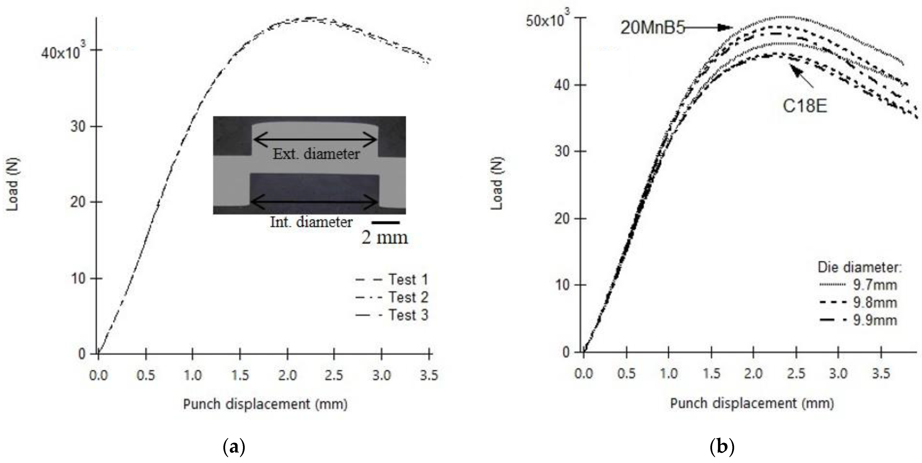 3.1. Mechanical Properties and Fine Blanking Behavior