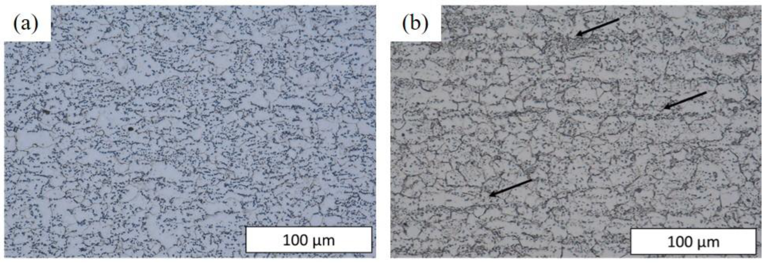 - Wu, M.; Fang, W.; Chen, R.M.; Jiang, B.; Wang, H.B.; Liu, Y.Z.; Liang, H.L. Mechanical anisotropy and local ductility in transverse tensile deformation in hot rolled steels: The role of MnS inclusions. Mater. Sci. Eng. A 2019, 744, 324–334. [Google Scholar] [CrossRef]