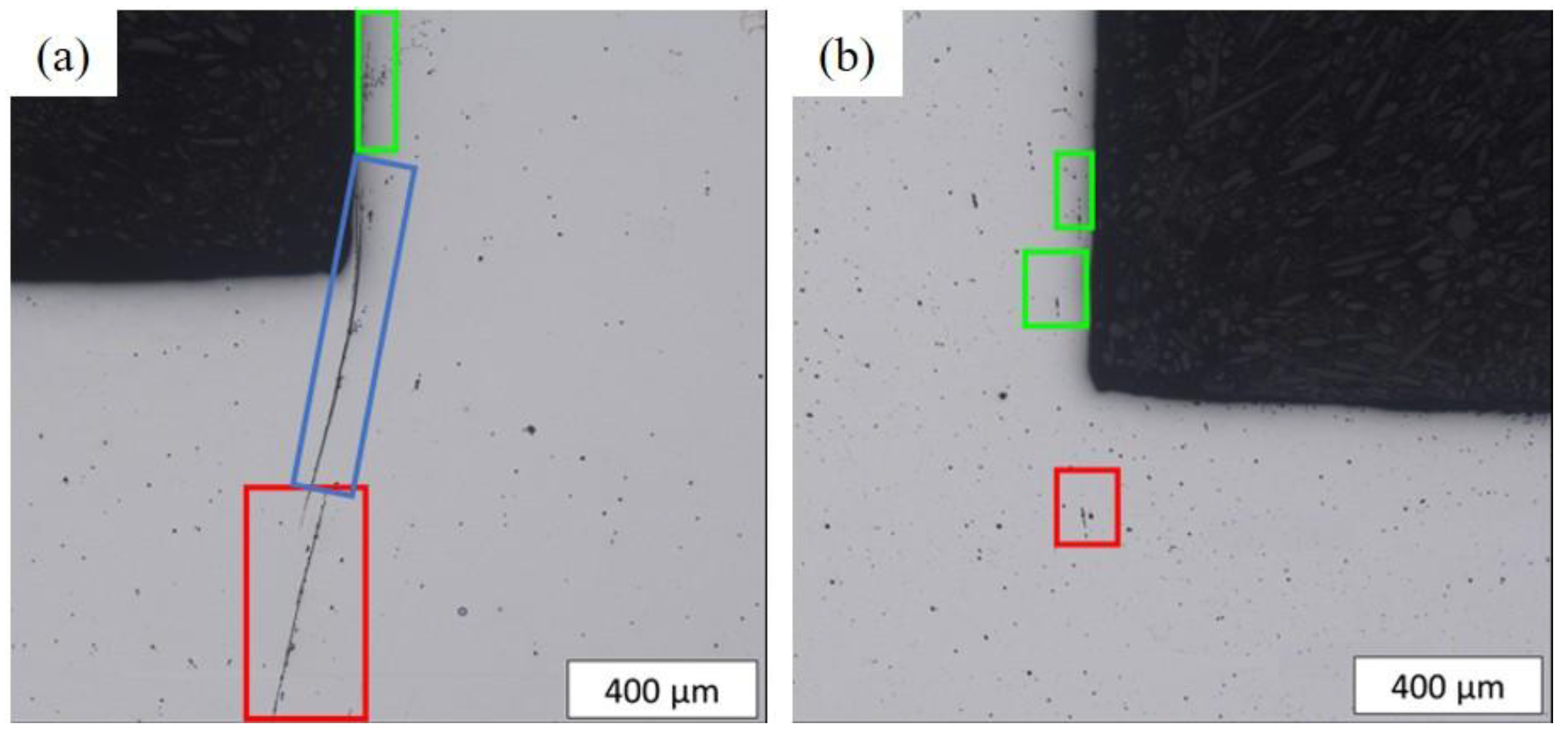 - Numerous cracks were observed in C18E at a medium half-cutting height, while only a few crack initiations were detected in 22MnB5 at a higher half-cutting height.