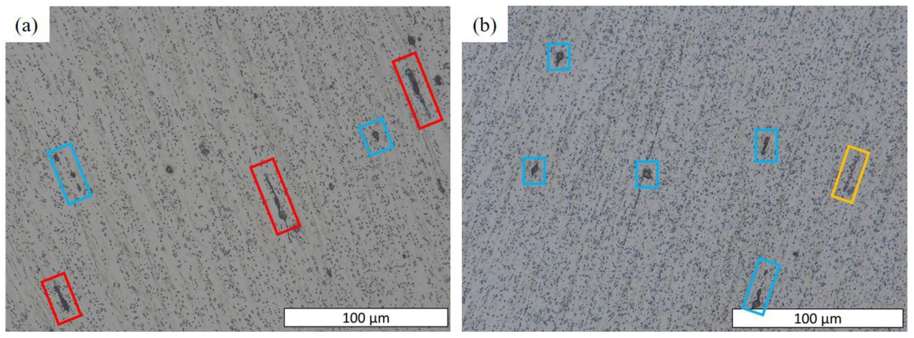 - Yu, H.; Liu, X.; Bi, H.; Chen, L. Deformation behavior of inclusions in stainless Steel strips during multi-pass cold rolling. J. Mater. Process Technol. 2009, 209, 455–461. [Google Scholar] [CrossRef]