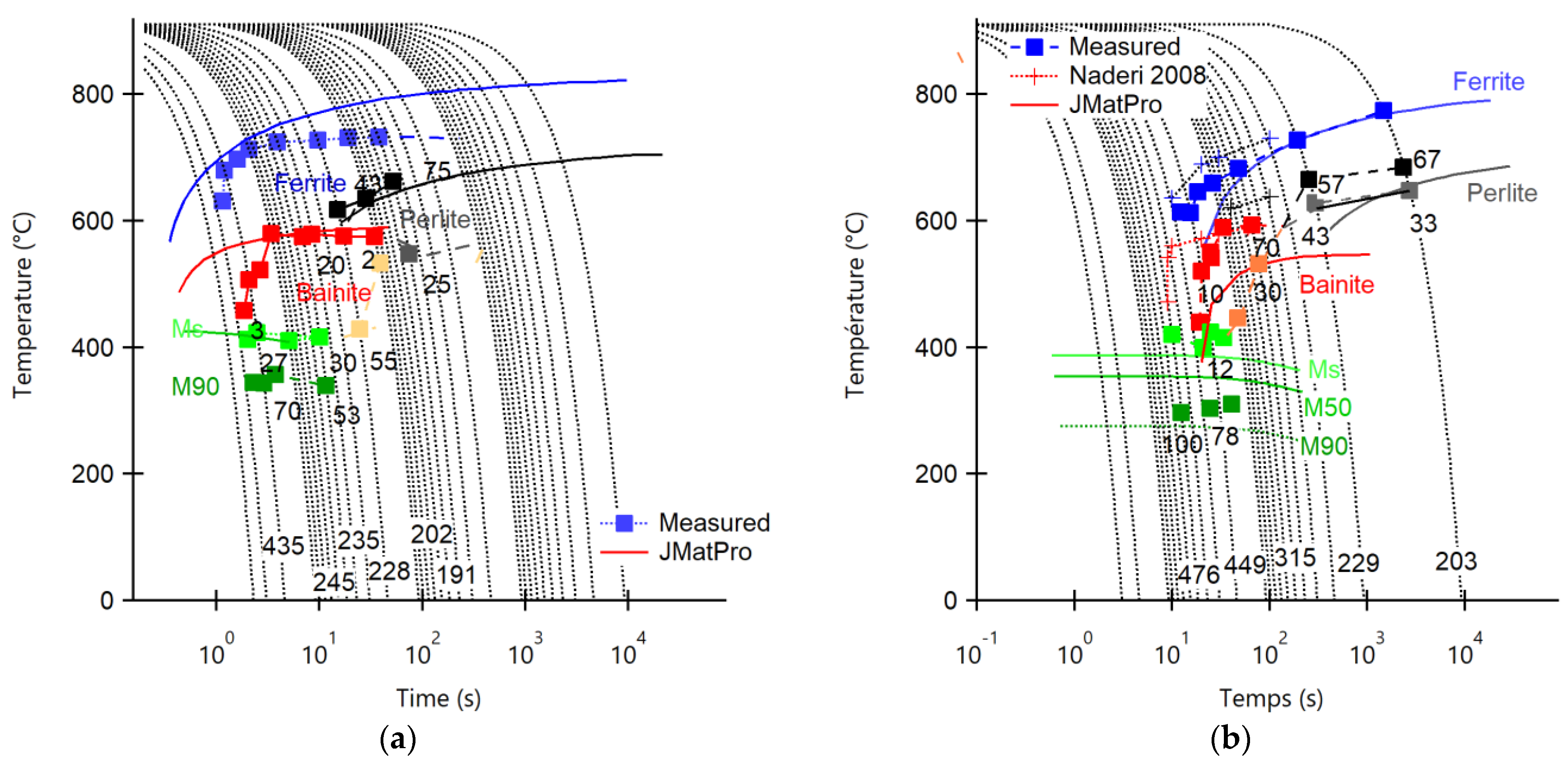 - Naderi, M.; Saeed-Akbari, A.; Bleck, W. The effects of non-isothermal deformation on martensitic transformation in 22MnB5 steel. Mater. Sci. Eng. A 2008, 487, 445–455. [Google Scholar] [CrossRef]