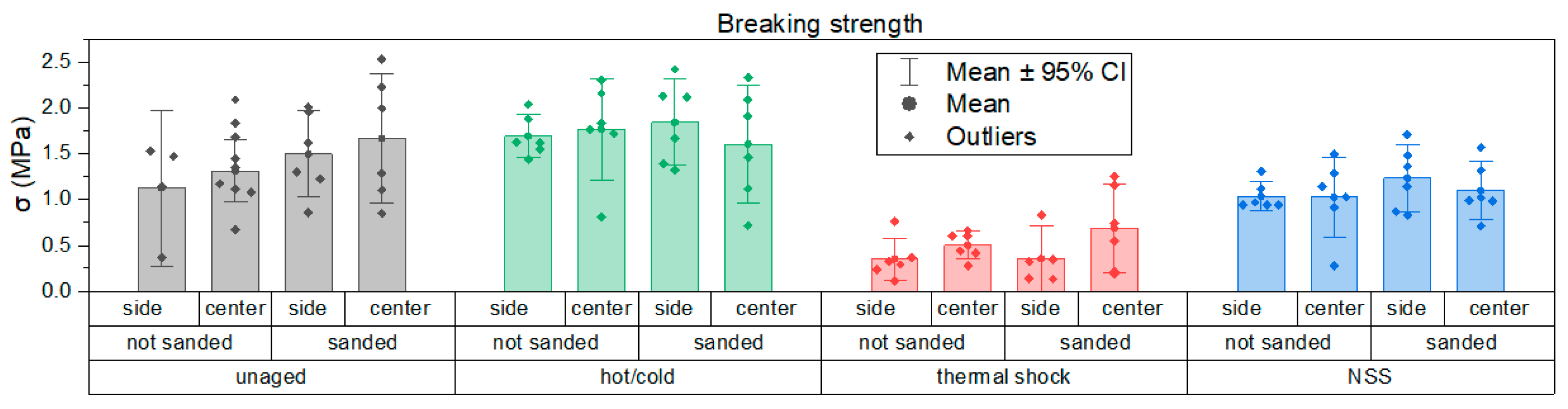 Tensile pull-off adhesion test results, expressed in terms of stress at failure (σ), are shown below in Figure 14.