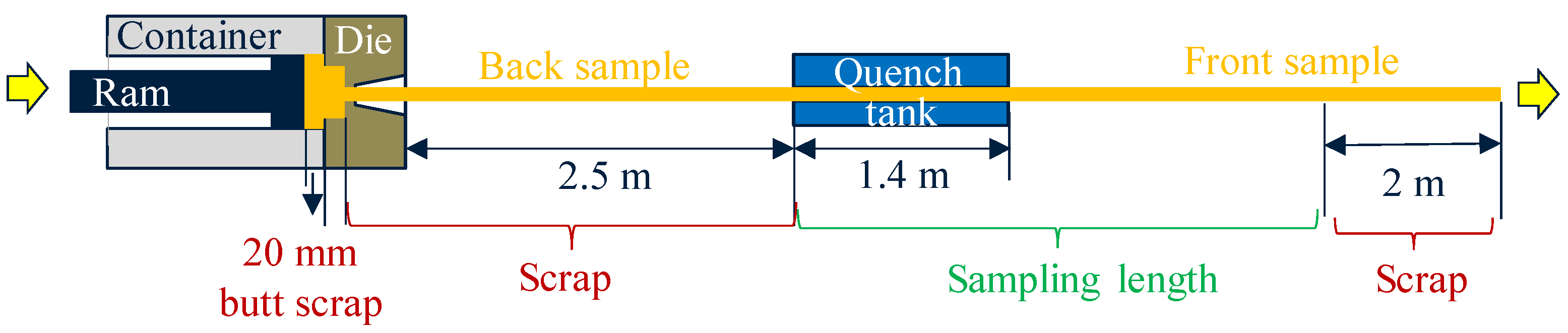 - Kordmir, S. Anisotropy of Strength and Fracture Behavior in Al-Mg-Si-(Mn) Extrusion Alloys. Master’s Thesis, University of British Columbia, Vancouver, BC, Canada, 2023. [Google Scholar]