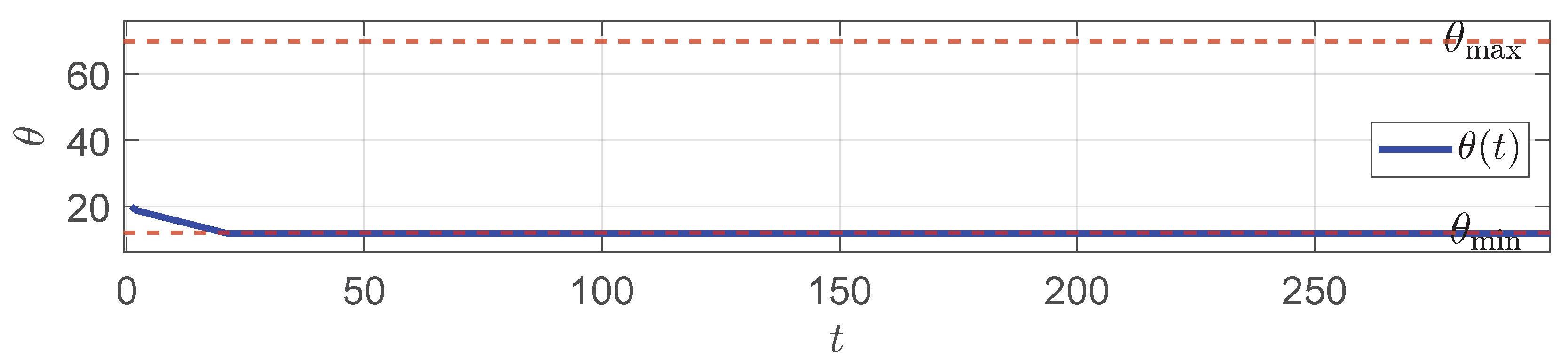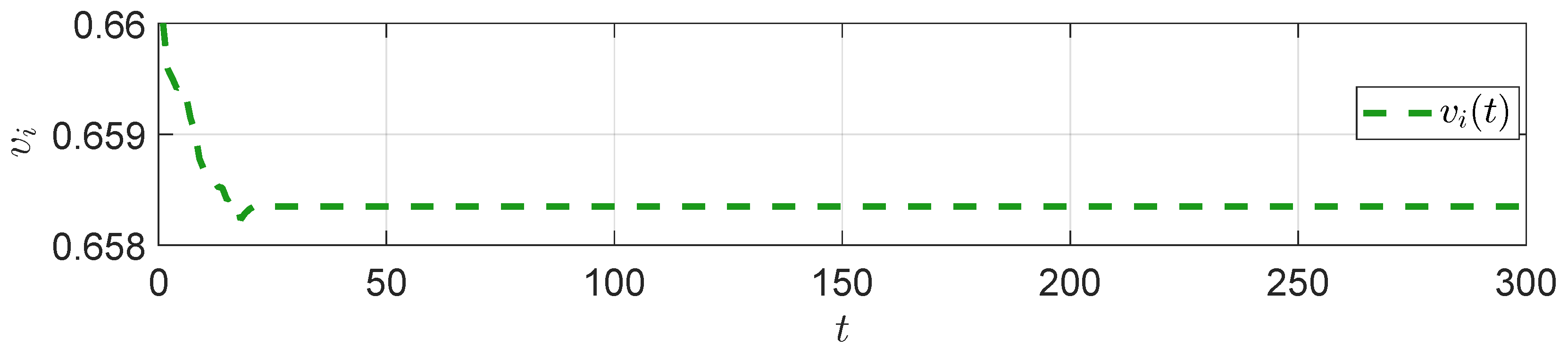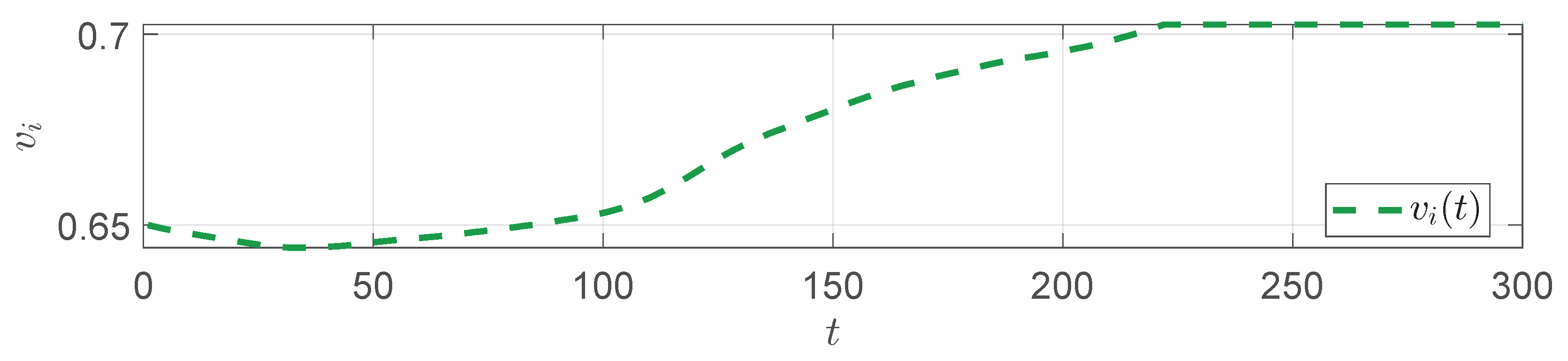 x ( t ) = v i ( t ) , v i + 1 ( t ) , h i ( t ) , h i + 1 ( t ) , L ( t ) T , u ( t ) = k ( t ) , Δ s i + 1 ( t ) , Δ s i ( t ) T , y ( t ) = L ( t ) , θ ( t ) T .