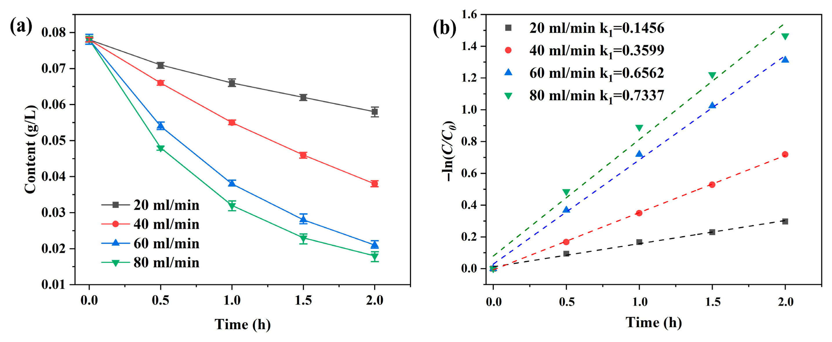 3.4.2. Mechanism of Iron Removal via Oxygen Aeration in Diluted Solutions