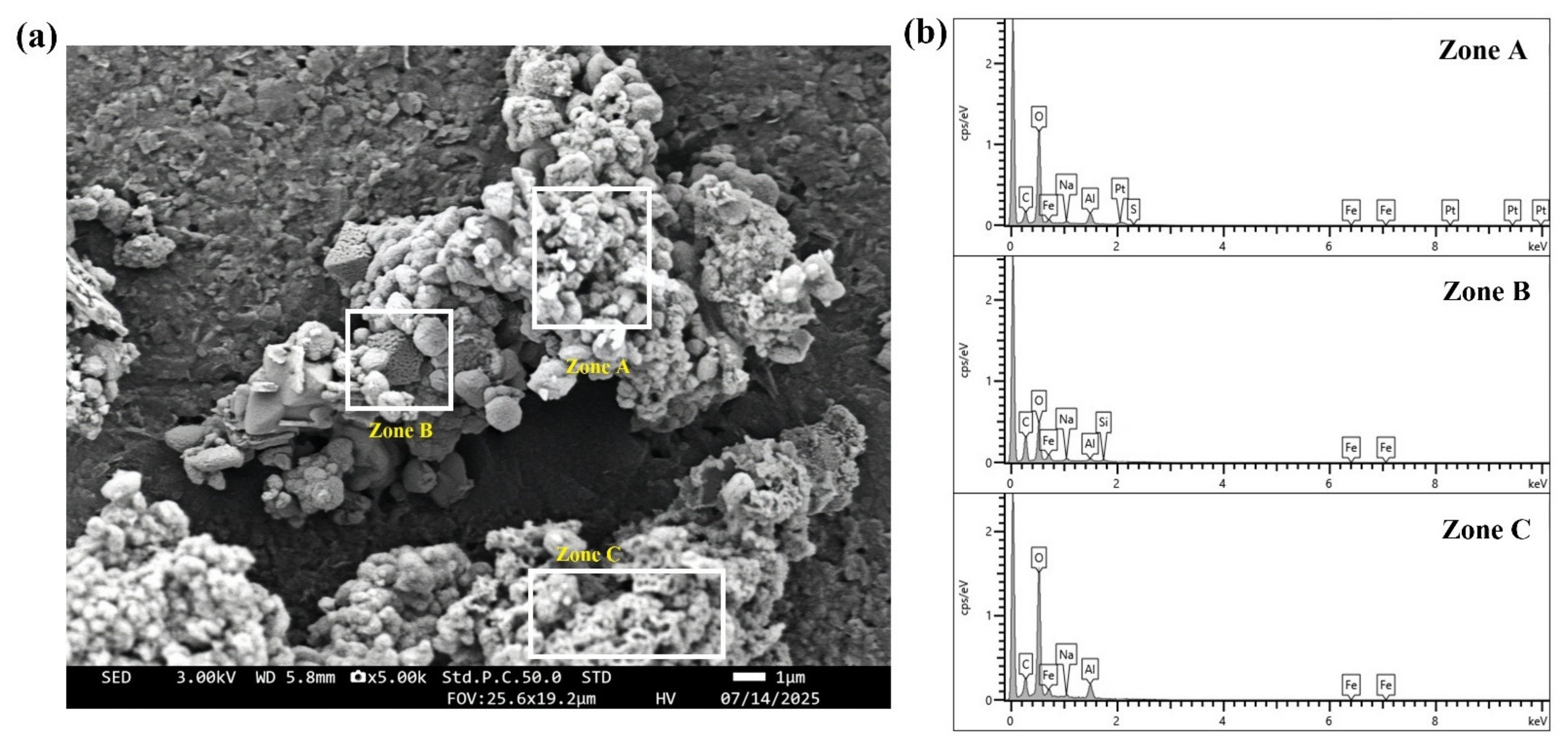 | Fe | EDS | 13.32 | 23.18 | 9.91 | 15.47 | 6.89 |