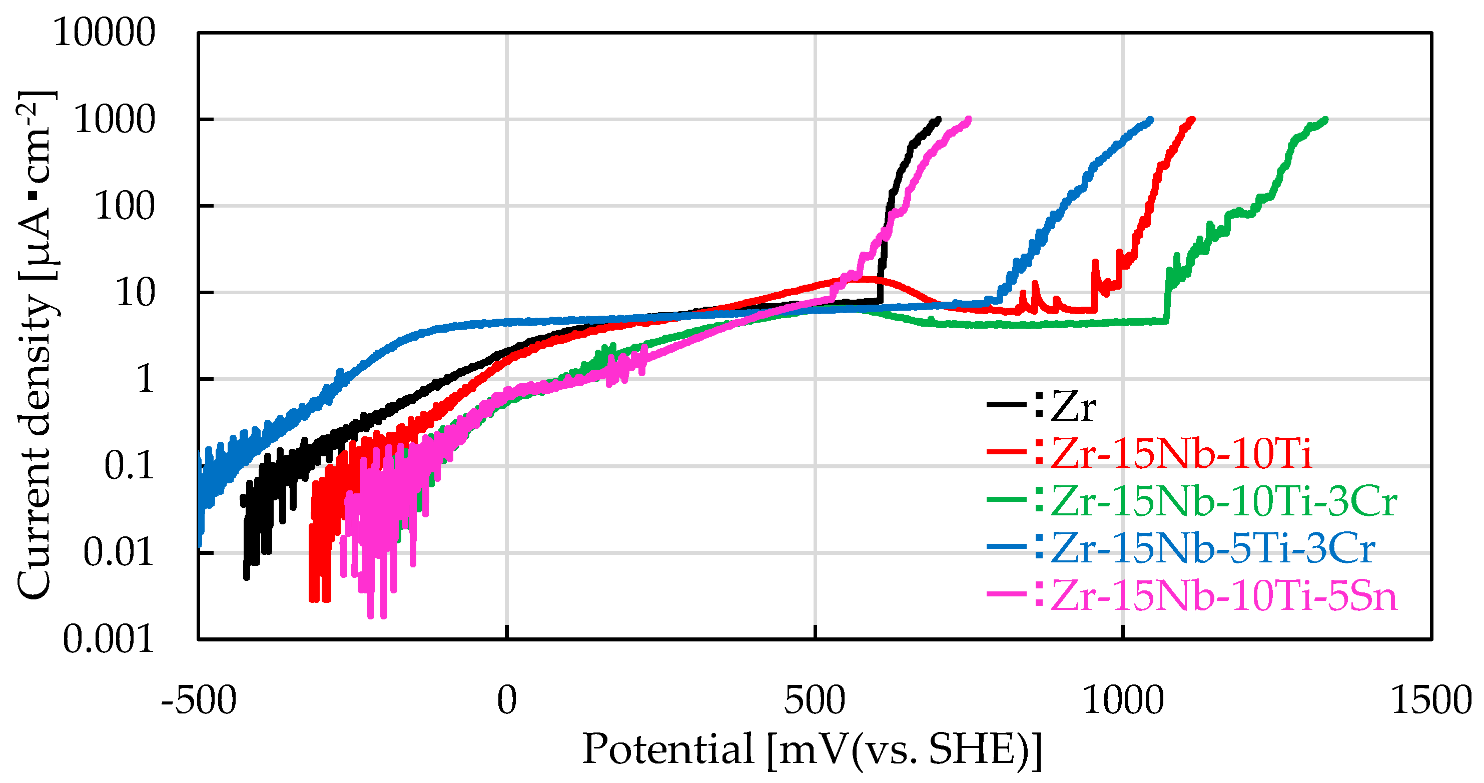 - Tsutsumi, Y. Corrosion Resistance of Zr as Metallic Biomaterials. Zair. Kankyo 2014, 63, 360–364. [Google Scholar] [CrossRef]
