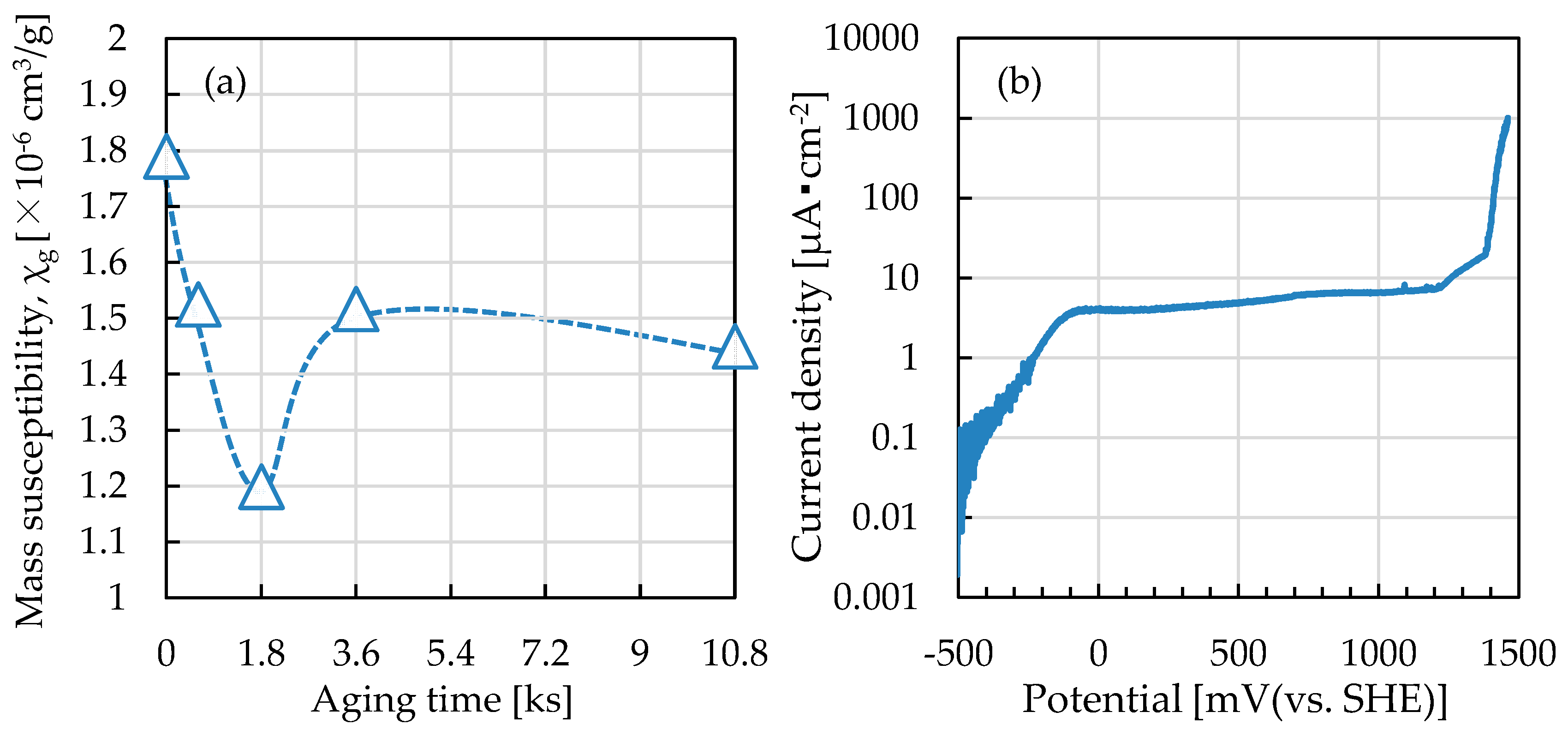APA StyleTamura, S., Kimura, T., & Aono, Y. (2025). Effect of ω-Phase Precipitation on Magnetic Susceptibility and Corrosion Resistance of Meta-Stable β-Phase Zr-Nb-Ti-Cr Alloy. Metals, 15(11), 1208. https://doi.org/10.3390/met15111208