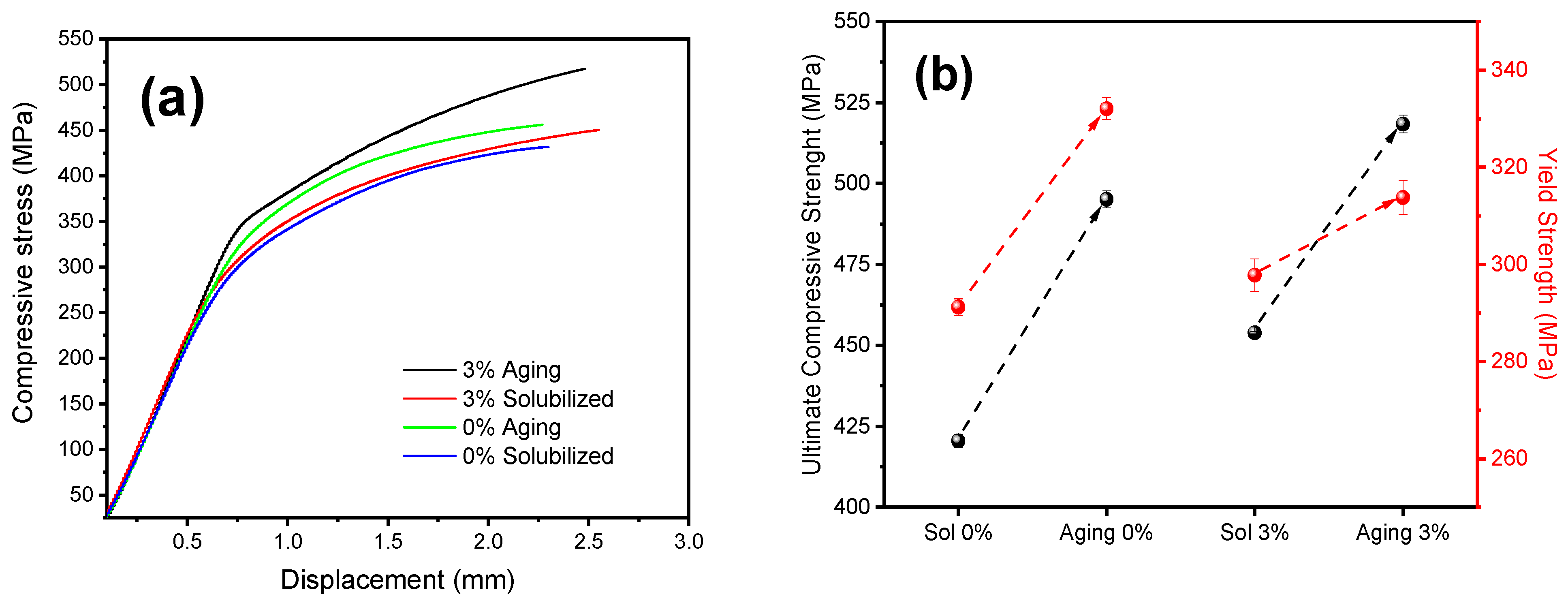 - Alexopoulos, N.D.; Velonaki, Z.; Stergiou, C.I.; Kourkoulis, S.K. Effect of artificial ageing on the work hardening stages of precipitation hardened wrought Al-Cu-Mg alloy. Mater. Sci. Eng. A 2017, 700, 457–467. [Google Scholar] [CrossRef]