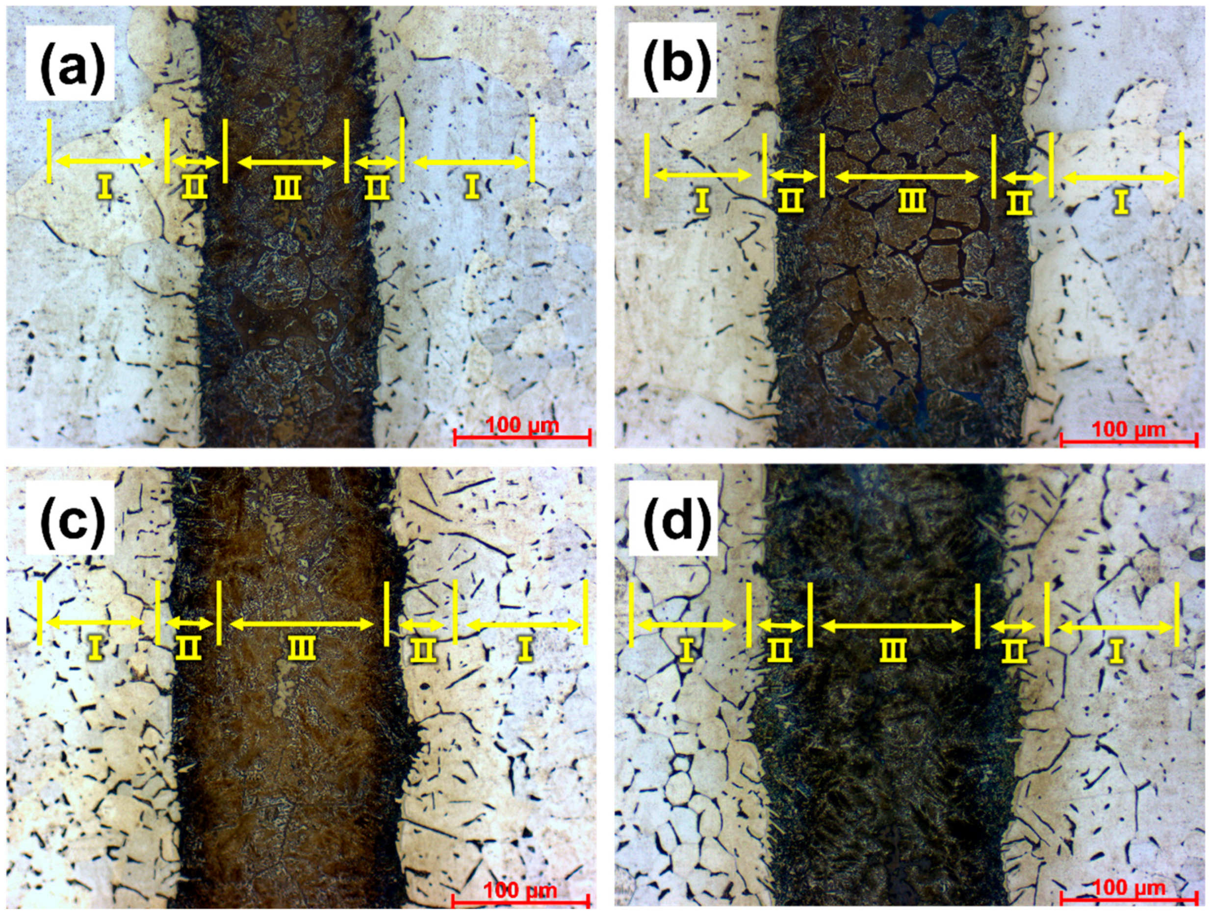 3.1. Microstructural Regions