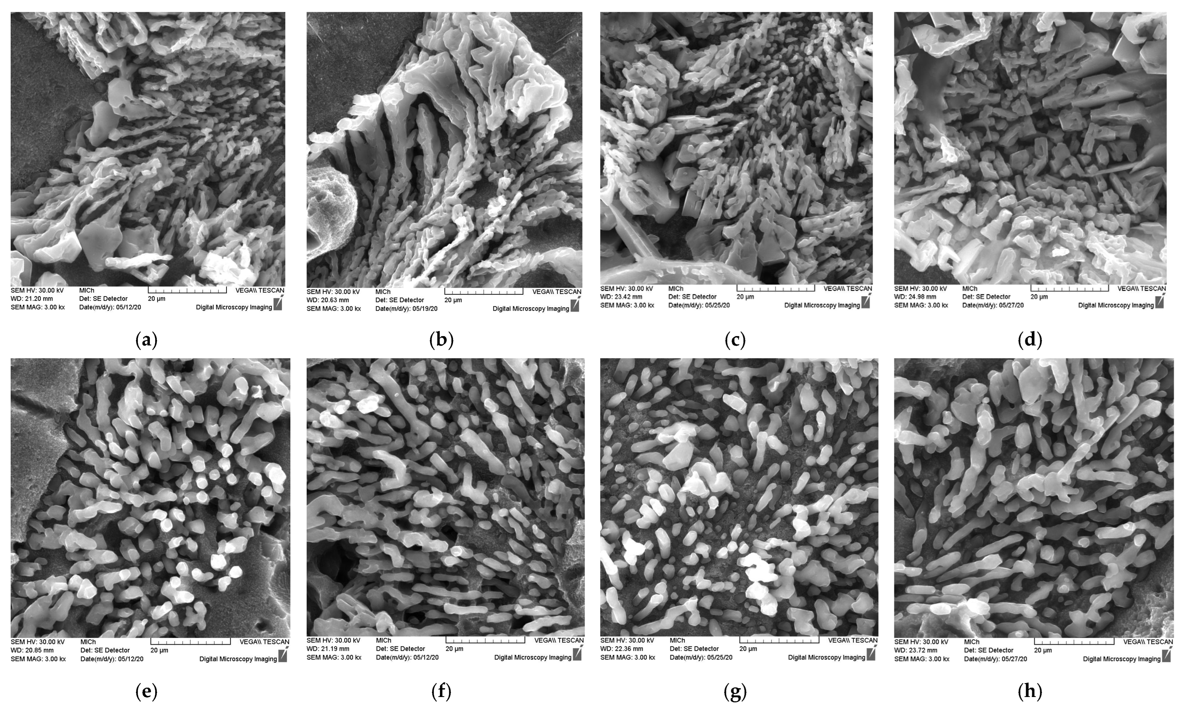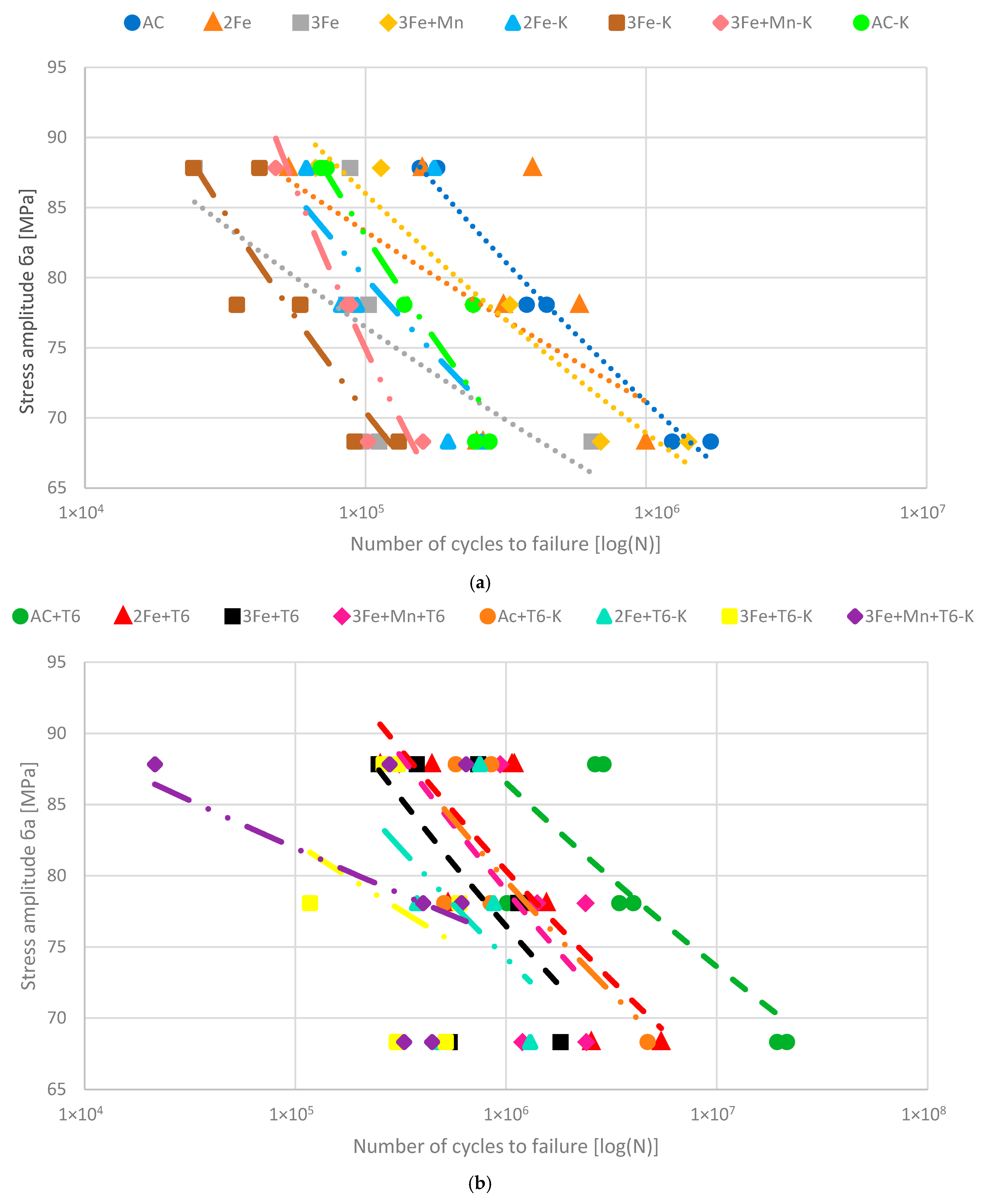 - Kuchariková, L.; Pastierovičová, L.; Tillová, E.; Uhríčik, M.; Zatkalíková, V.; Šajgalík, M. The influence of a corrosive environment on fatigue and mechanical properties of an Al-cast alloy with higher Fe content. Metals 2023, 13, 1019. [Google Scholar] [CrossRef]