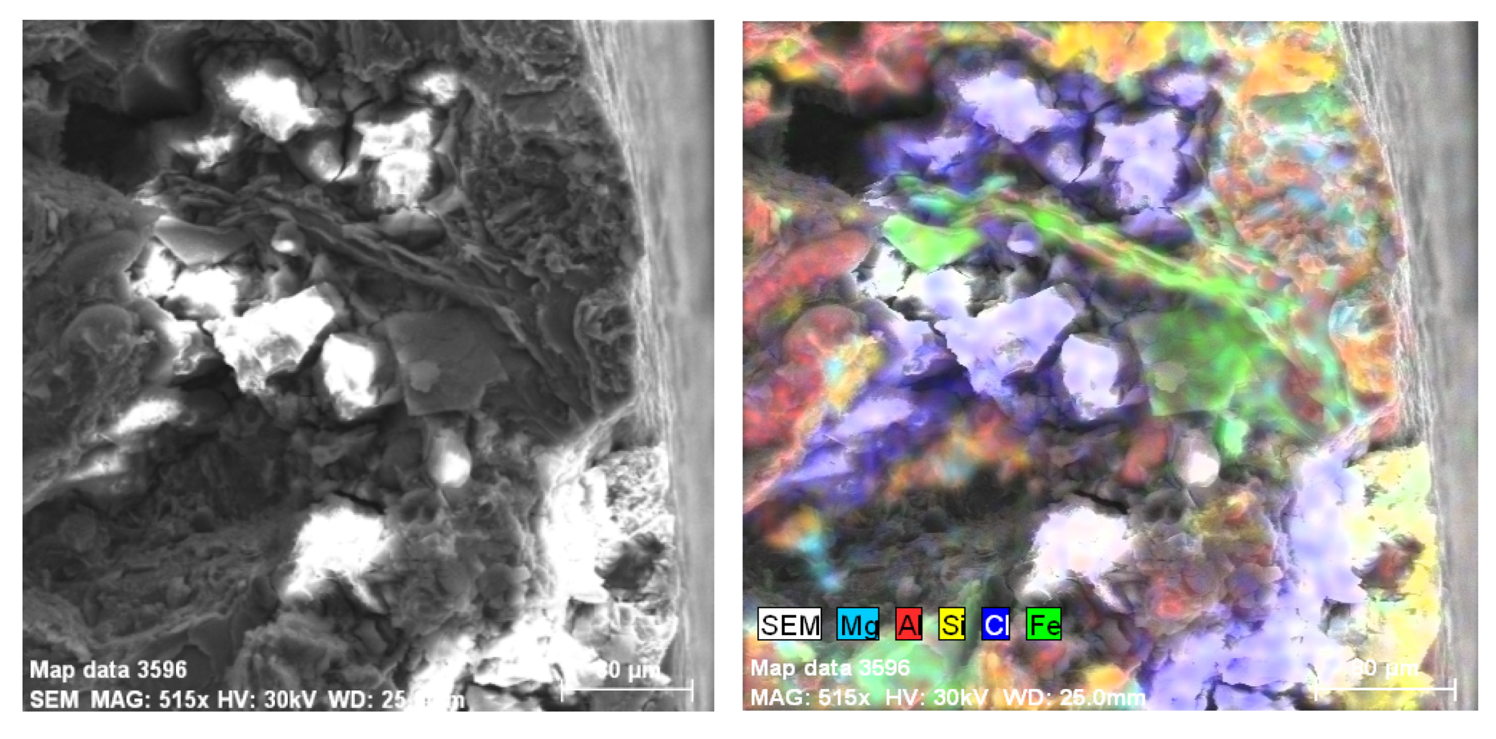 | Material after corrosion attack | AC | AC + T6 | 2Fe | 2Fe + T6 | 3Fe | 3Fe + T6 | 3Fe + Mn | 3Fe + Mn + T6 |