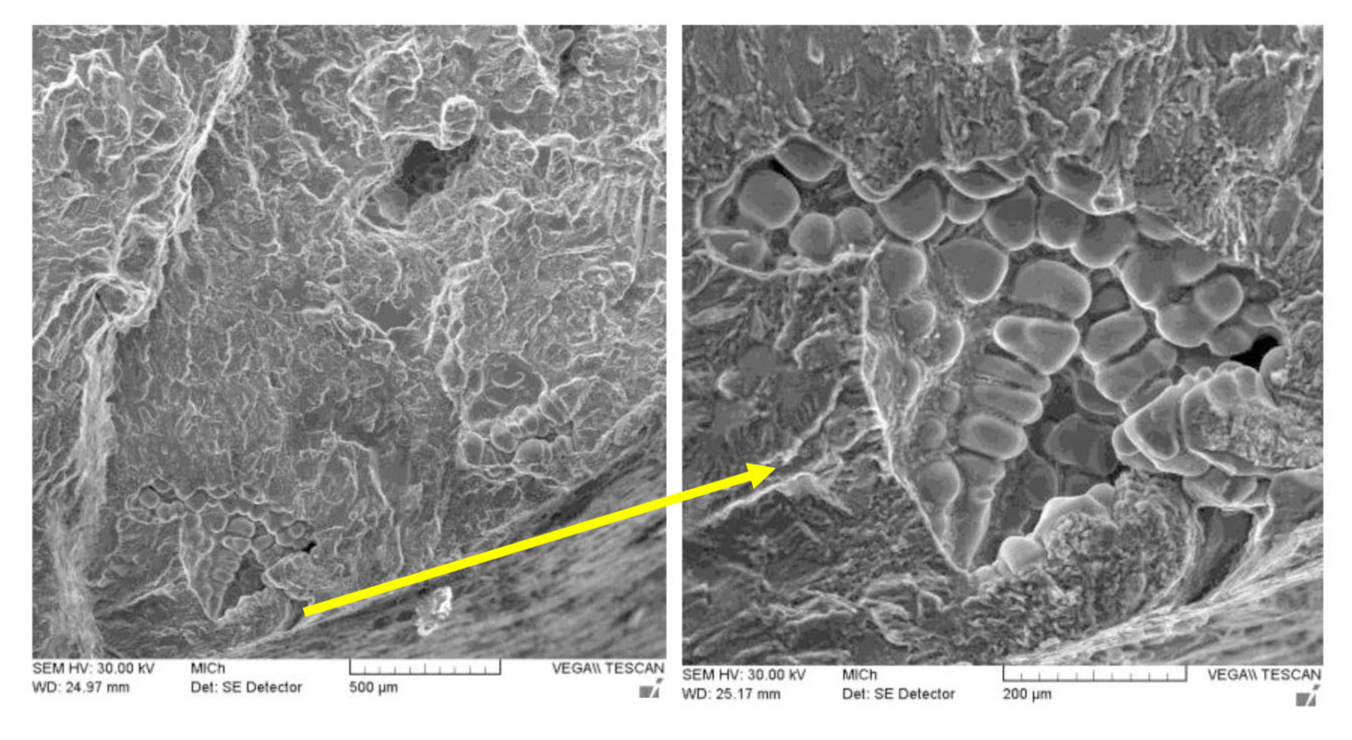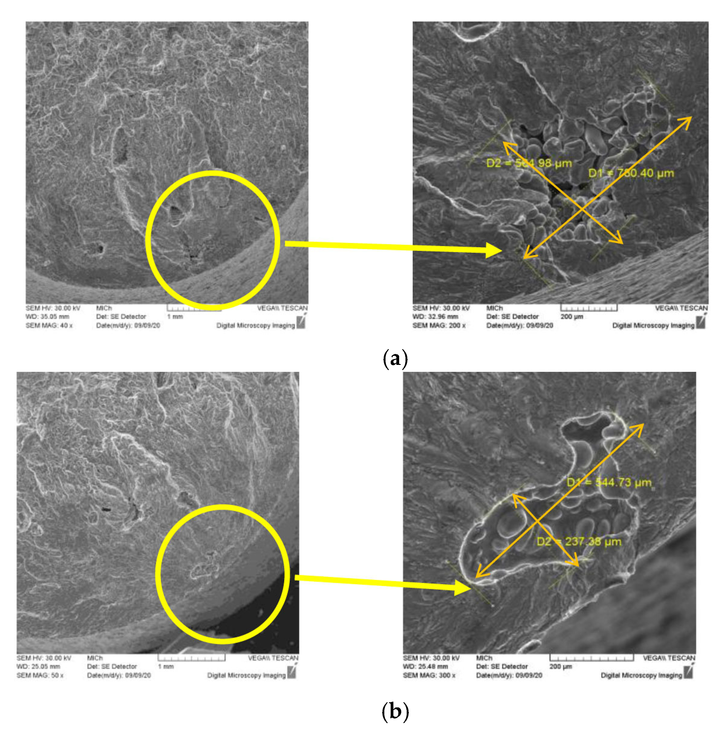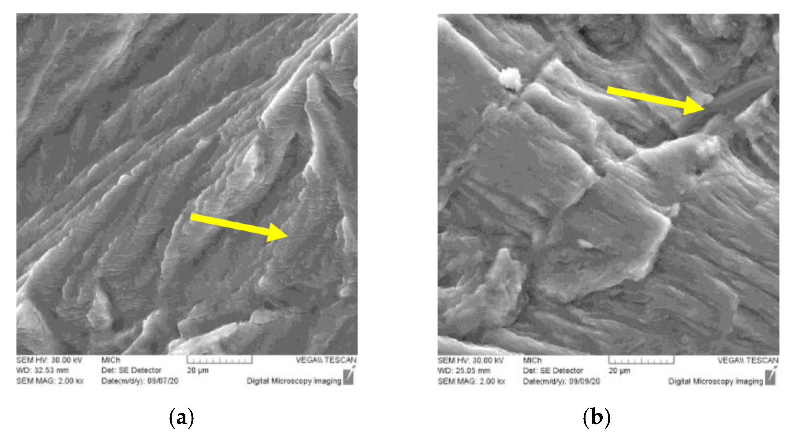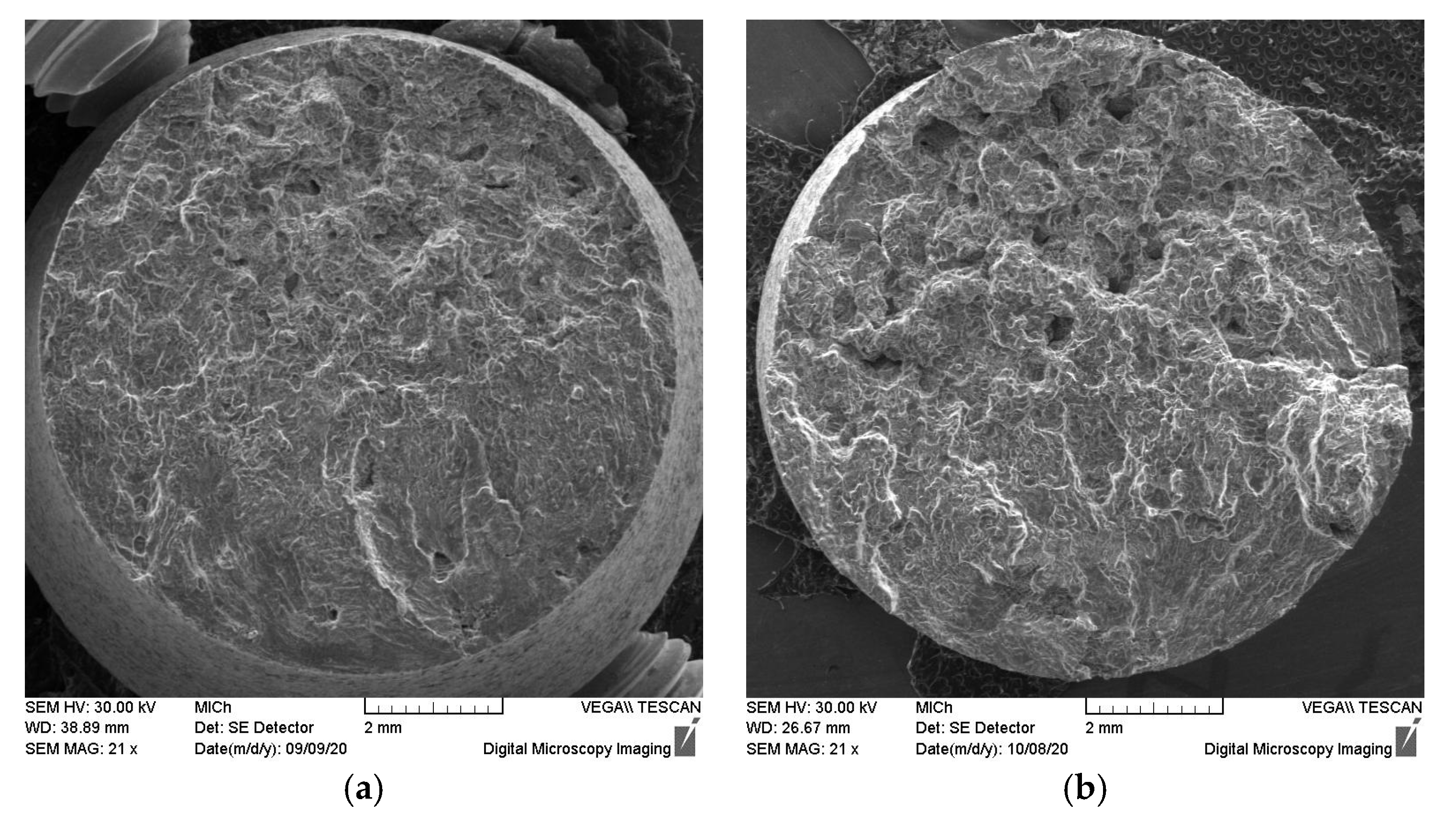 3.5. Fractography Analysis of Fatigue Fracture Surfaces
