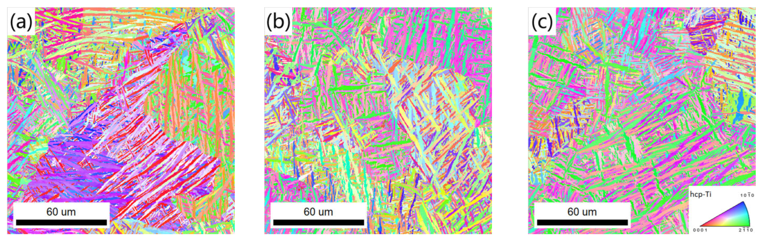 - Ahmed, T.; Rack, H.J. Phase transformations during cooling in α+β titanium alloys. Mater. Sci. Eng. A 1998, 243, 206–211. [Google Scholar] [CrossRef]