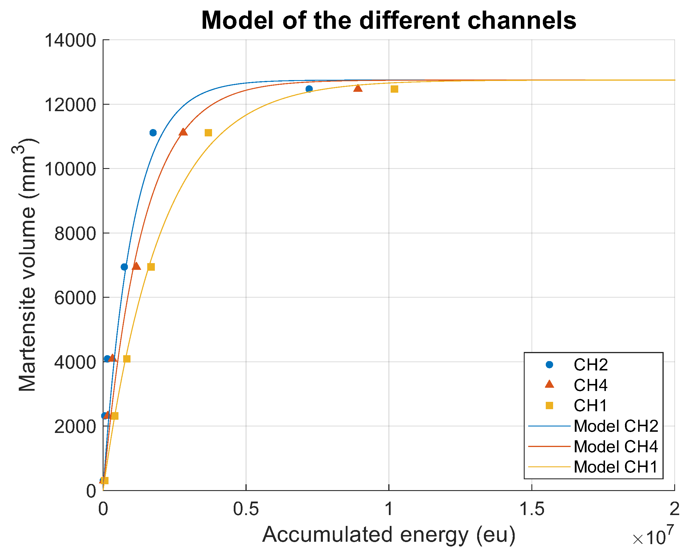 Once all experimental data, including both AE and metallographic analysis results, were obtained, the search for a model capable of fitting these data was undertaken. Minor adjustments to the data may be necessary to account for noise events that are not easily removed through filtering.