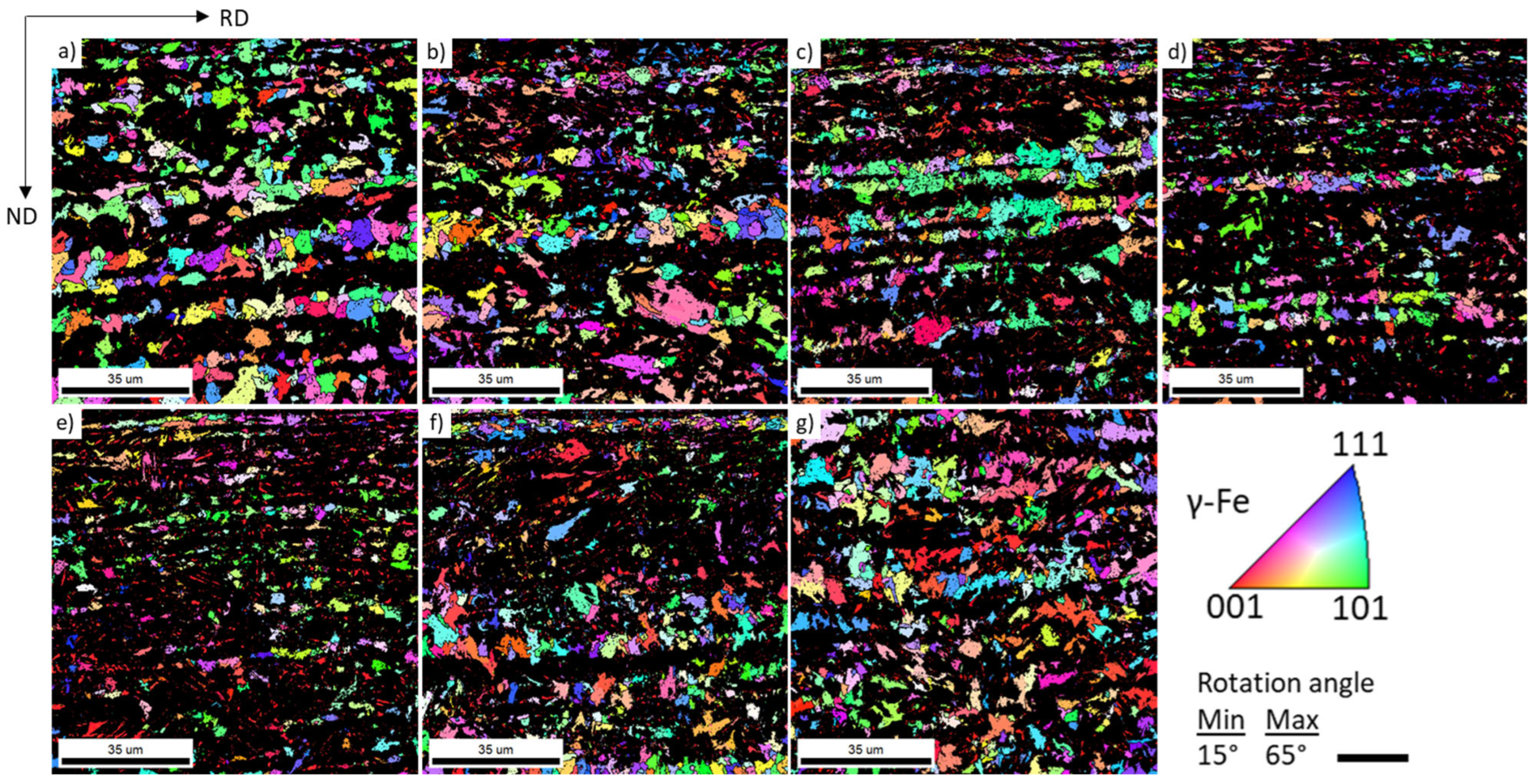 - Celotto, S.; Ghadbeigi, H.; Pinna, C.; Shollock, B.A.; Efthymiadis, P. Deformation-Induced Microstructural Banding in TRIP Steels. Metall. Mater. Trans. A 2018, 49, 2893–2906. [Google Scholar] [CrossRef]