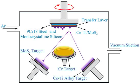 - Tian, C.L.; Cai, H.C.; Xue, Y.J. Effect of Working Pressure on Tribological Properties of Ce-Ti/MoS2 Coatings Using Magnetron Sputter. Coatings 2022, 12, 1576. [Google Scholar] [CrossRef]