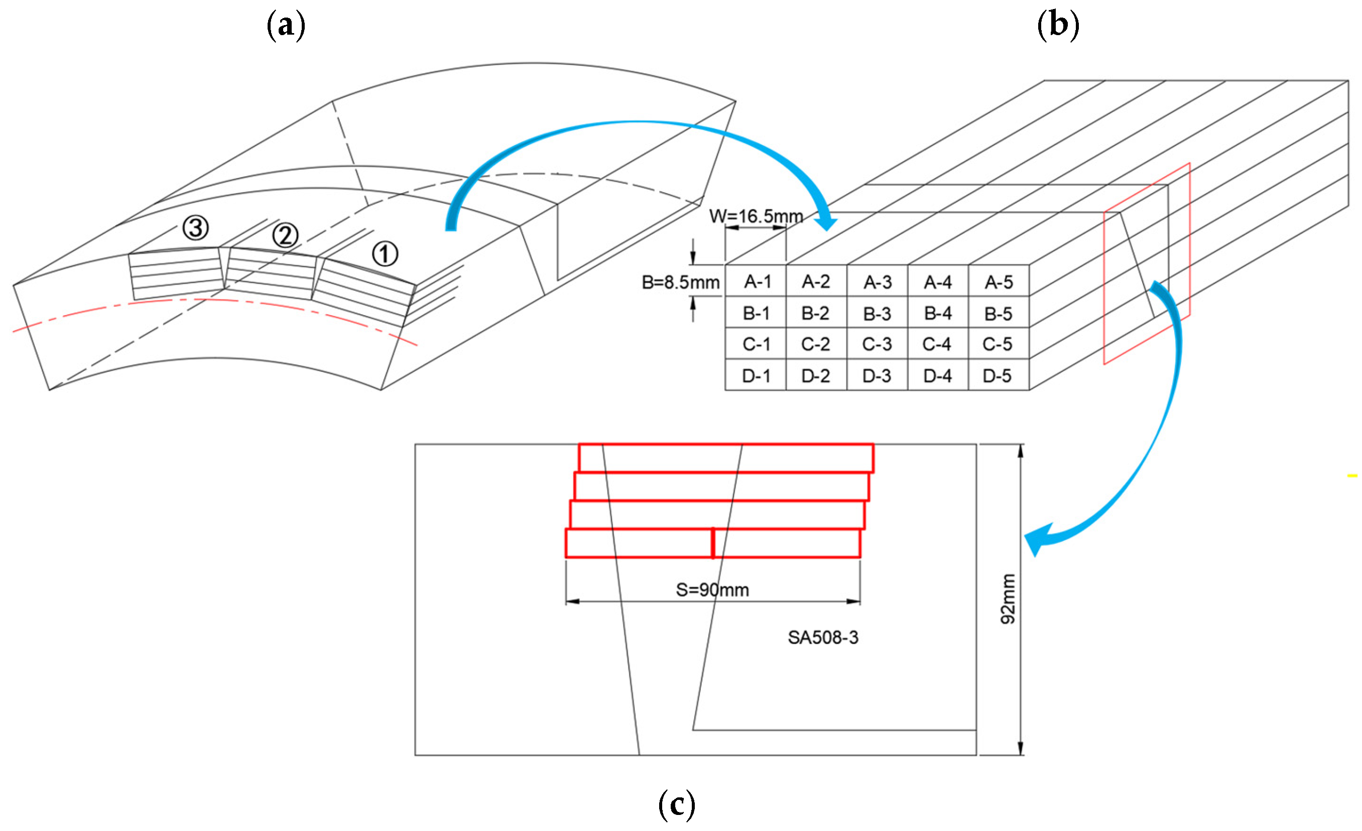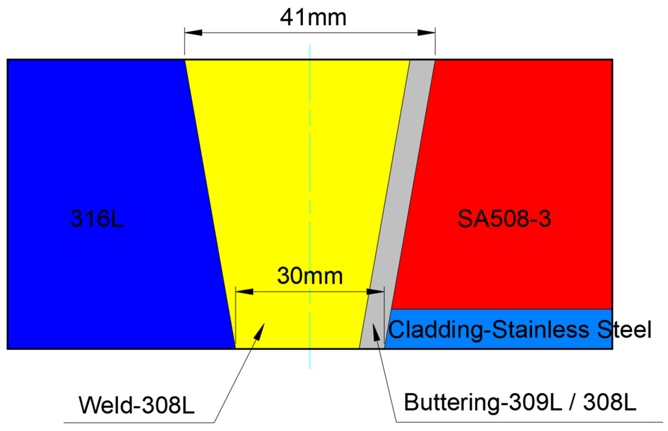 - Wang, S.; He, X.; Gui, Y.W.; Wang, Z.; Zhao, K.; Ni, C. Investigation of the Inhomogeneous Mechanical and Crack Driving Force of Low Alloy Steel SA508 and Its Welded 309L/308L Stainless Steel Cladding. Nucl. Sci. Eng. 2022, 197, 623–632. [Google Scholar] [CrossRef]