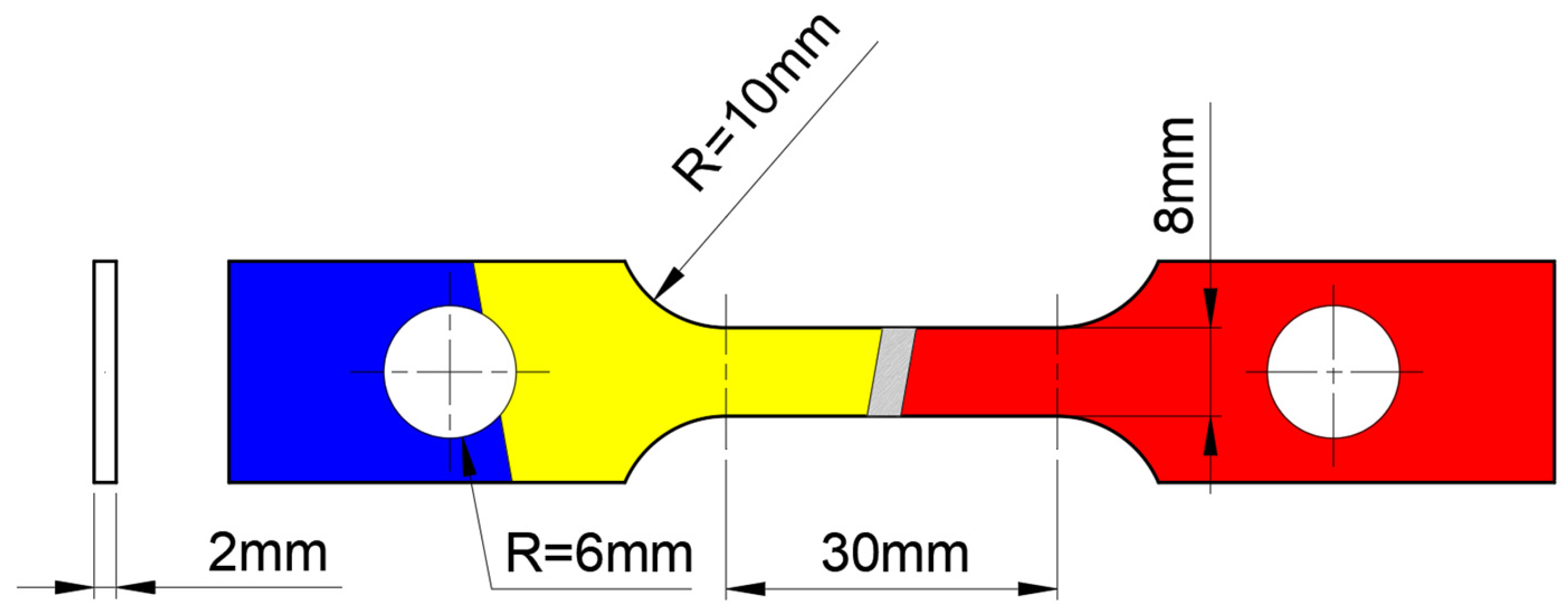 - Younise, B.; Rakin, M.; Gljak, N.; Medjo, B.; Sedmak, A. Effect of material heterogeneity and constraint conditions on ductile fracture resistance of welded joint zones—Micromechanical assessment. Eng. Fail. Anal. 2017, 82, 435–445. [Google Scholar] [CrossRef]