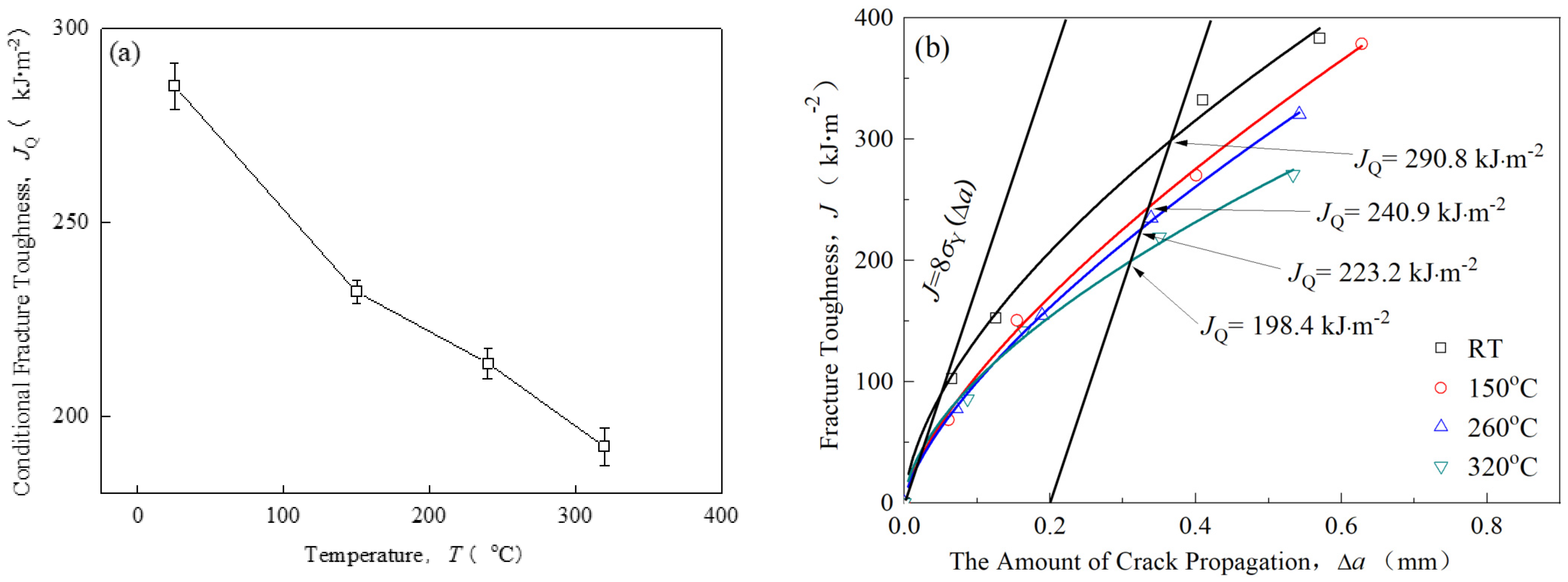 Chicago/Turabian StyleLiu, Jiahua, Aiquan Zheng, Lei Wang, Hongwu Xu, Feifei Ji, Liqun Guan, and Jiong Luo. 2025. "The Mechanism Underlying the Influence of Temperature on the Fracture Toughness of Dissimilar Steel Welded Joints in Nuclear Power Plants" Metals 15, no. 11: 1236. https://doi.org/10.3390/met15111236