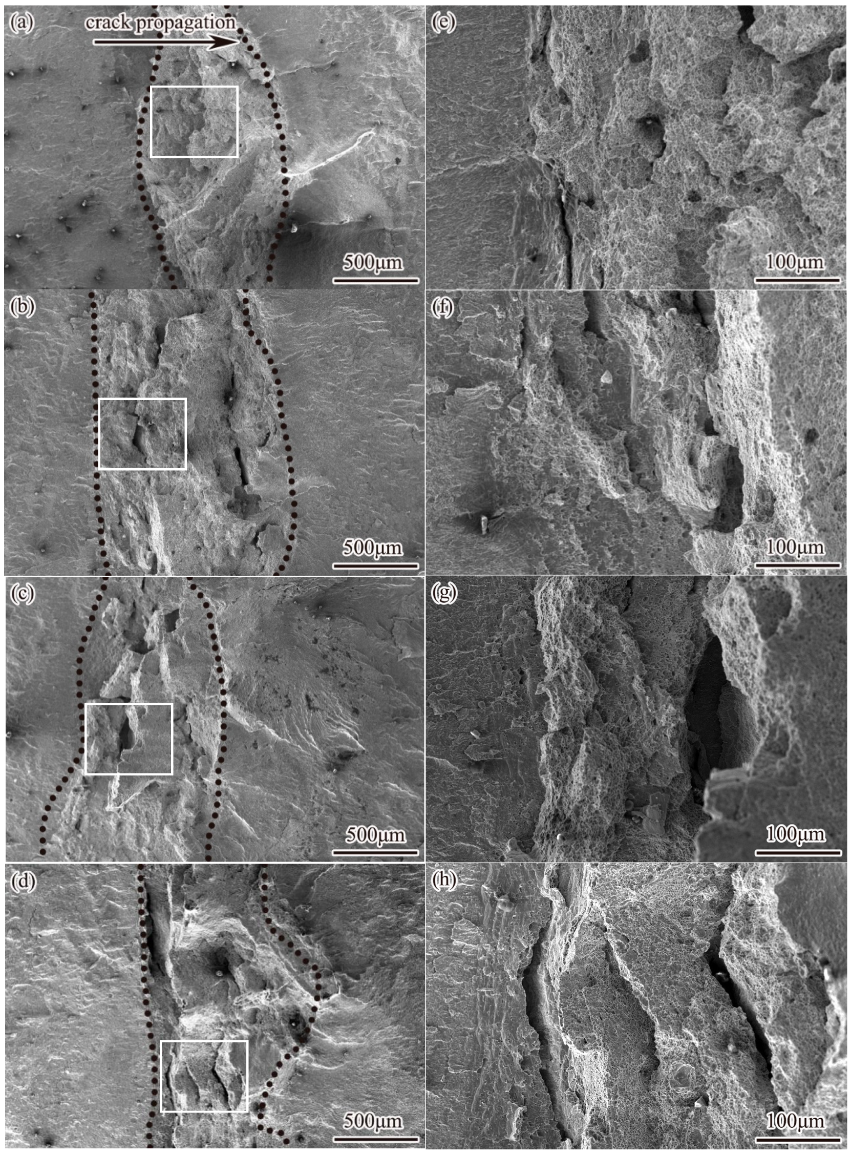 3.5. Mechanism Underlying Temperature’s Effect on DMWJ Crack Propagation