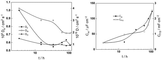Several conclusions can be drawn from the dependences of parameter values on time of exposure (Figure 9 and Figure 10):