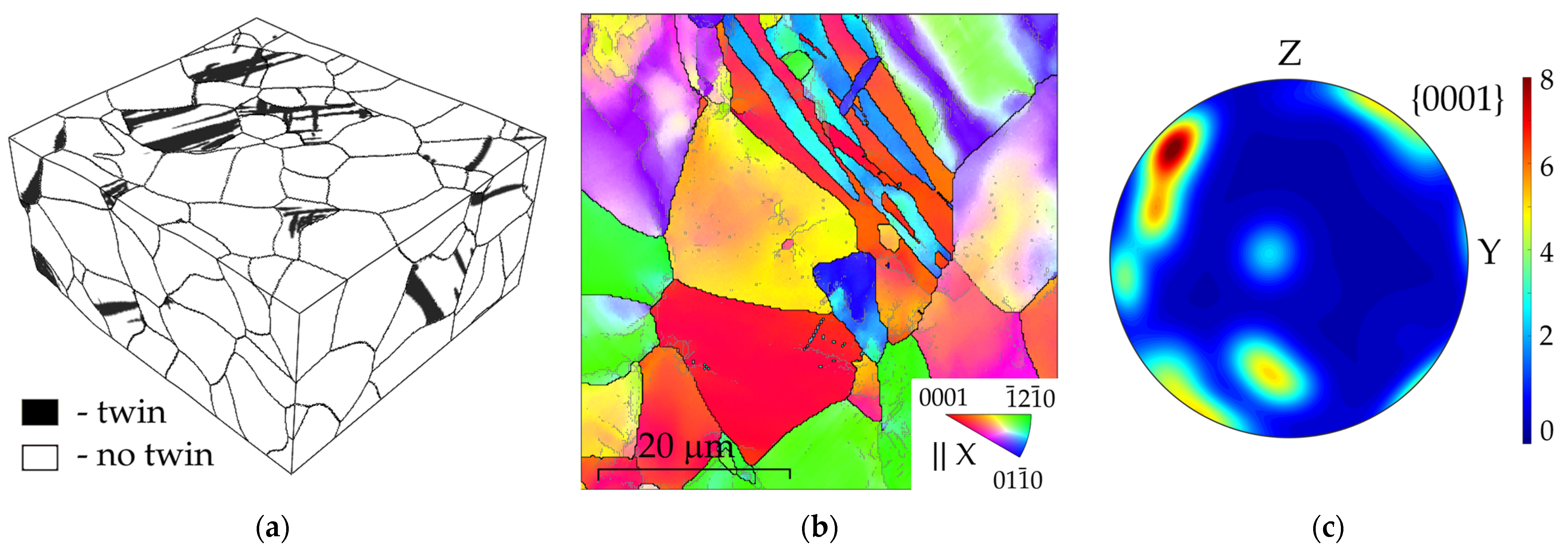 31. Cheng, J.; Ghosh, S. Crystal Plasticity Finite Element Modeling of Discrete Twin Evolution in Polycrystalline Magnesium. J. Mech. Phys. Solids 2017, 99, 512–538. [Google Scholar] [CrossRef]