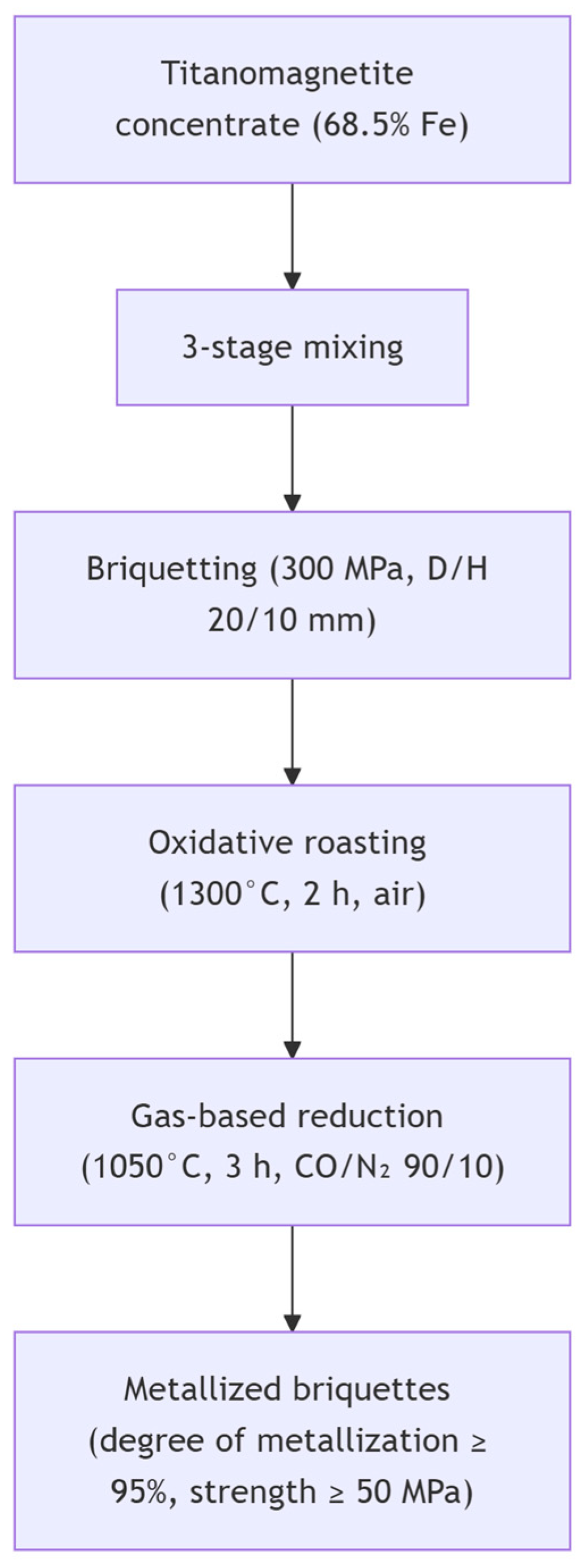 33]. The primary constraints pertain to the regulation of melt temperature (>1580 °C) and the viscosity of slag. In the context of induction and plasma furnaces, the utilization of briquettes (measuring 10–25 mm in diameter) has been demonstrated to be a successful methodology for the smelting of alloy steels. This approach has been shown to yield vanadium reducing rates of up to 90%, with titanium being introduced in the form of ferrotitanium [