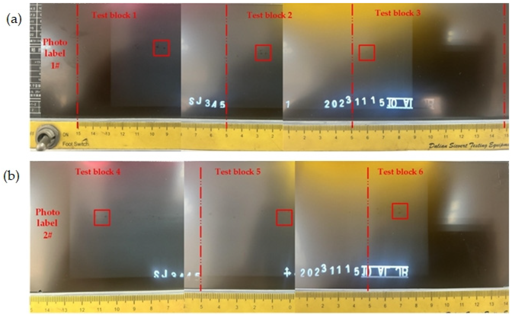 | Photo Label | Number of Test Block | Position (mm) | Number of Round Holes | Porosity |