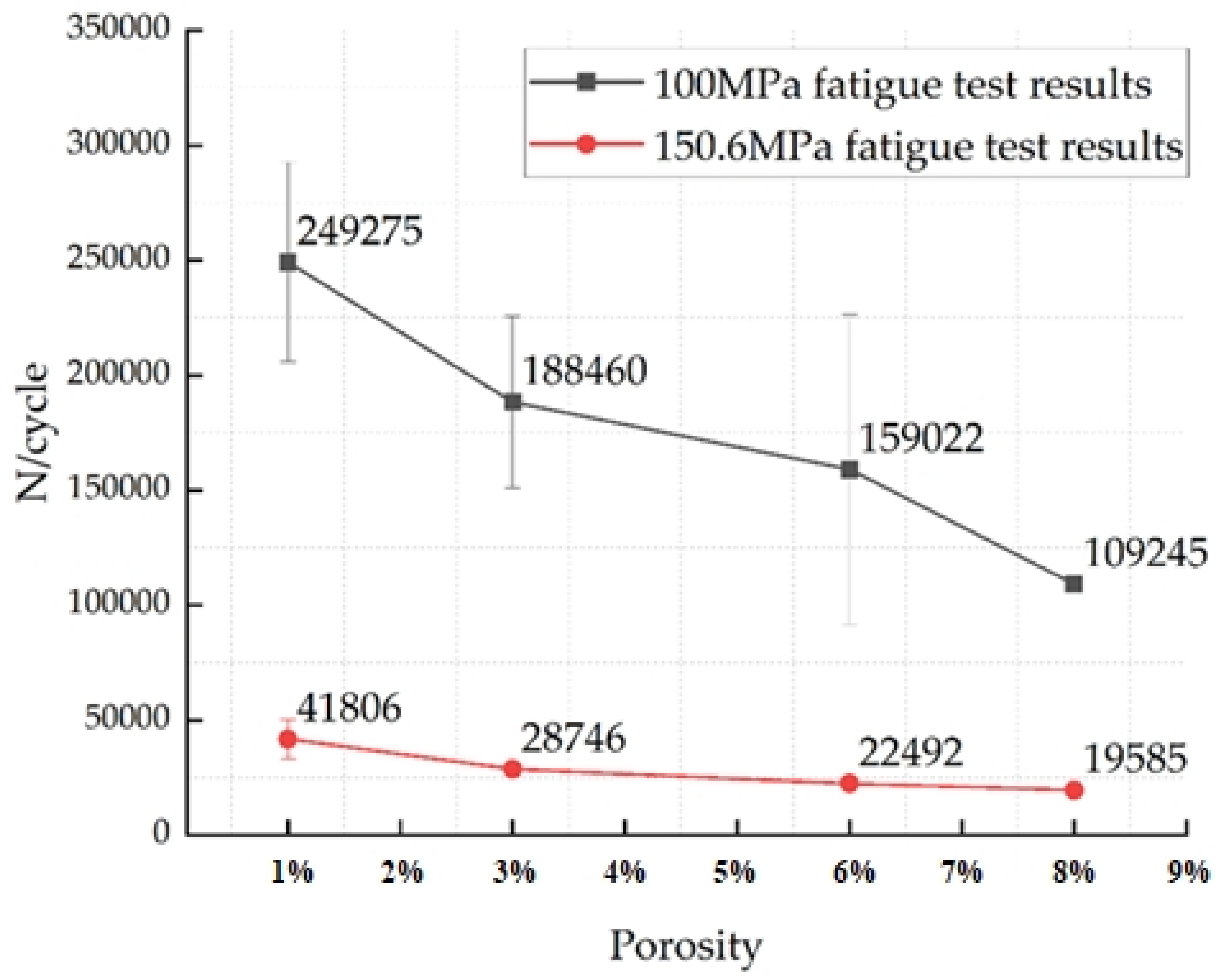 - Gao, Y.X.; Yi, J.Z.; Lee, P.D.; Lindley, T.C. The effect of porosity on the fatigue life of cast aluminium-silicon alloys. Fatig. Fract. Eng. Mater. Struct. 2004, 27, 559–570. [Google Scholar] [CrossRef]