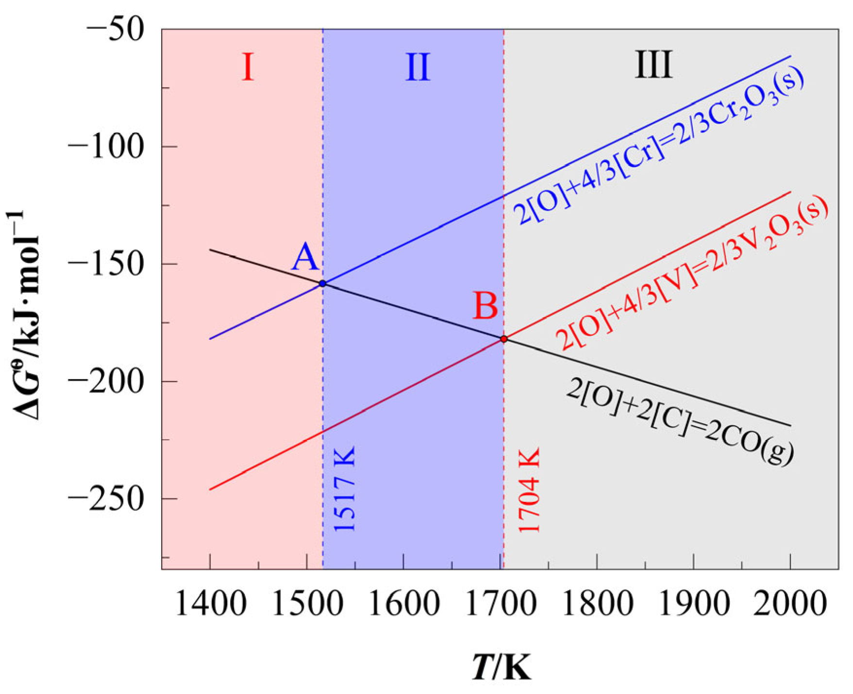 - Region II(O) (Cr-Activation Zone, ω(FeO) = 10–15%): ηCr oxidation accelerates;