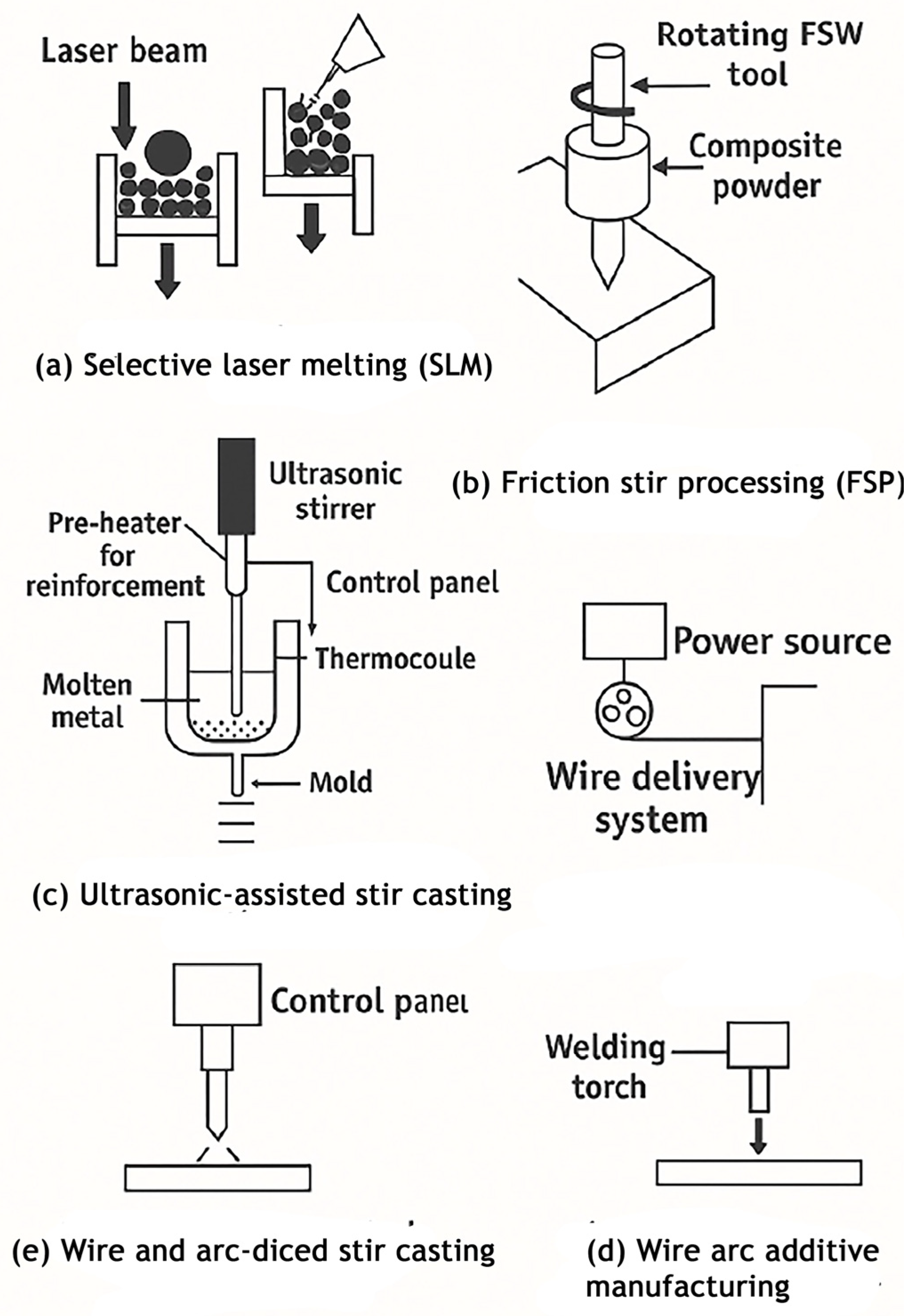 - Sarmah, P.; Gupta, K. Recent Advancements in Fabrication of Metal Matrix Composites: A Systematic Review. Materials 2024, 17, 4635. [Google Scholar] [CrossRef] [PubMed]