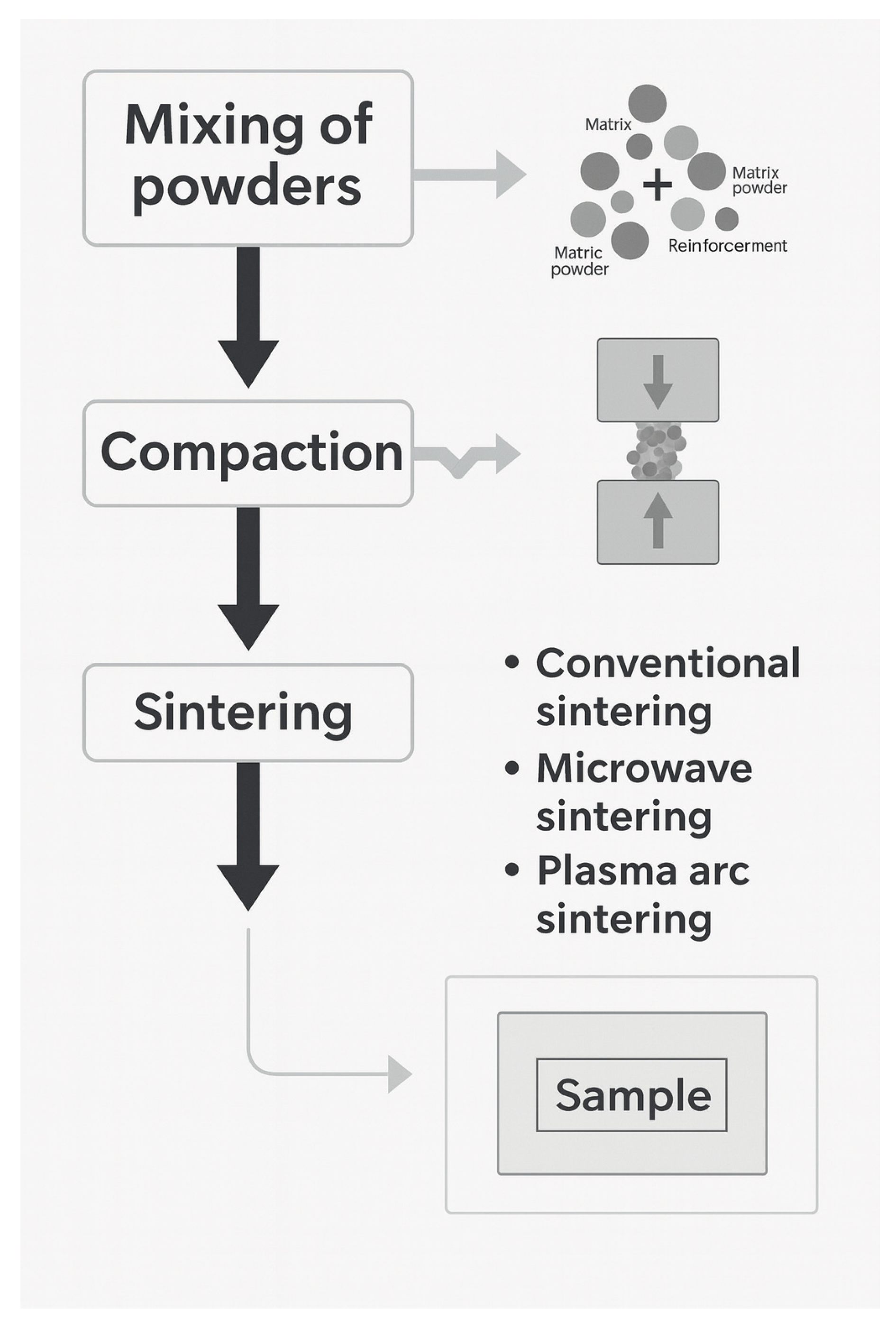 - Mohan, R.; Venkatraman, R.; Raghuraman, S.; Chidambaram, B.; Balakrishnan, S.; Vishnuram, S. An experimental study on the effect of reverse two-step sintering on aluminium-silicon carbide metal matrix composite. Adv. Sci. Technol. 2021, 106, 78–83. [Google Scholar] [CrossRef]