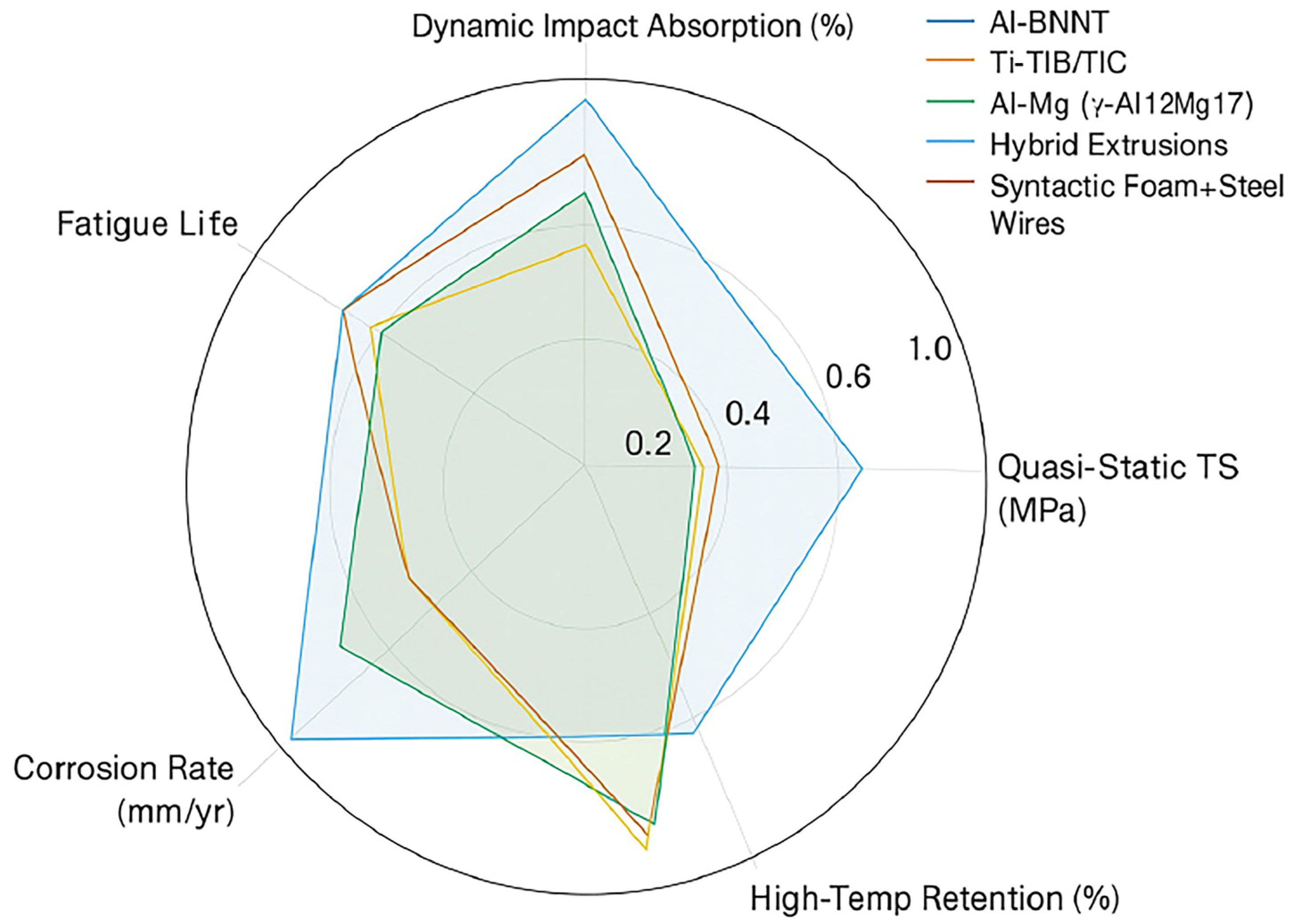| MMC Type/ Reinforcement | Quasi-Static TS (MPa) | Dynamic Impact Absorption (%) | Fatigue Life (Cycles at 107) | Corrosion Rate (mm/Year) | High-Temp Retention (%) at 300 °C | |