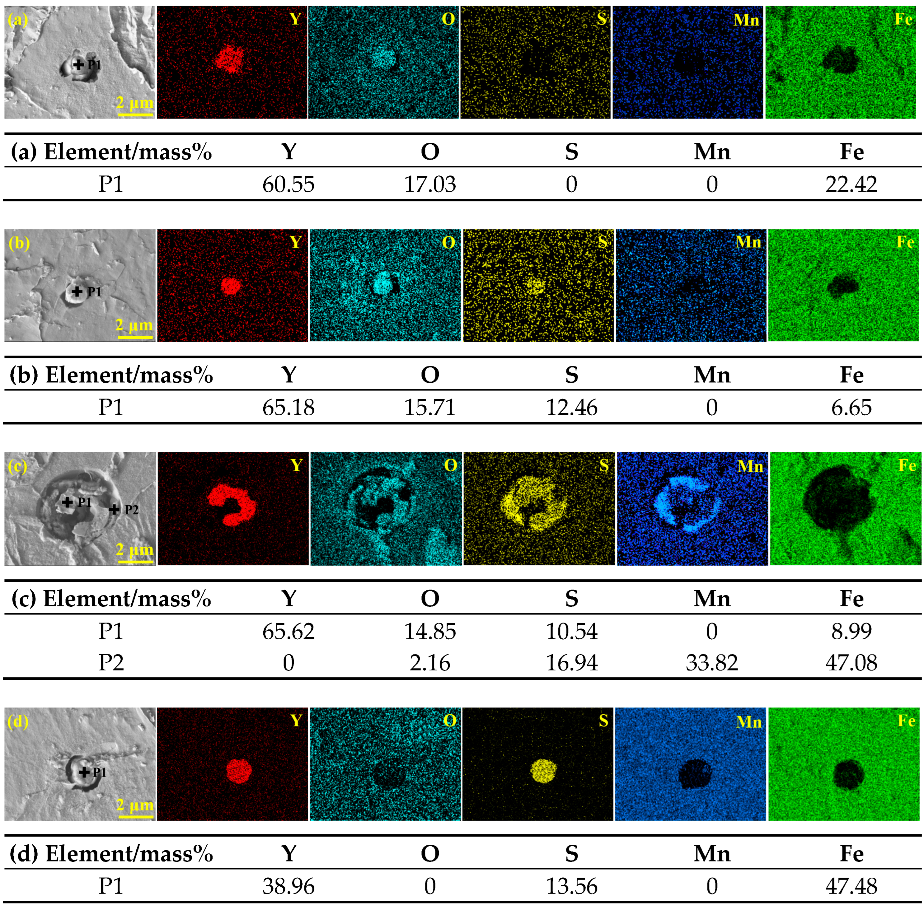 3.5. Evolution of Inclusions and Microstructure After Yttrium Treatment