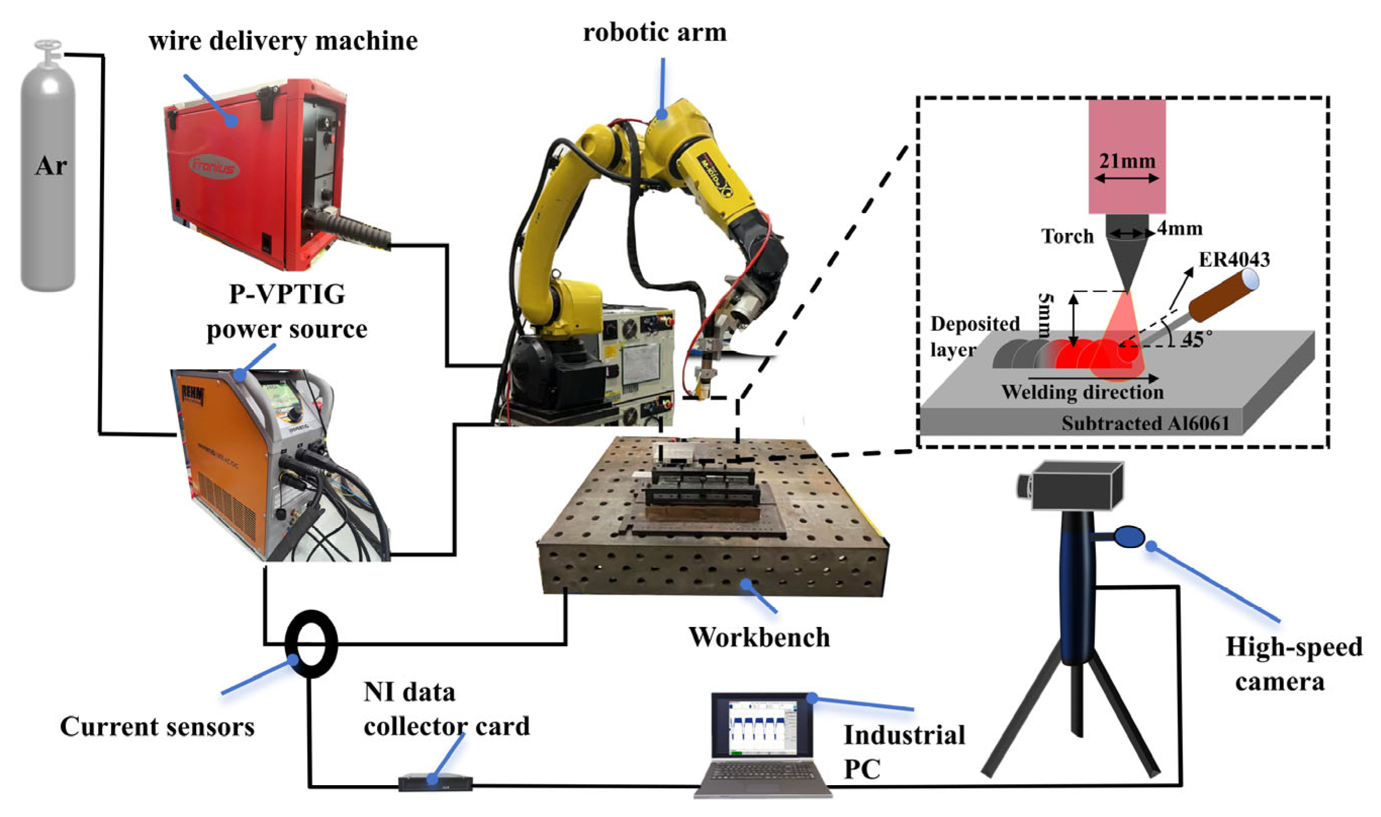 23. Wu, K.; Liu, Z.; Chen, Q.; Wu, Y.; Chen, Z.; Hong, X. Effect of high-frequency pulse frequency on arc characteristics and weld formation of aluminum alloy in variable polarity 1 kHz pulse GMAW. Weld. World 2025, 69, 2691–2709. [Google Scholar] [CrossRef]