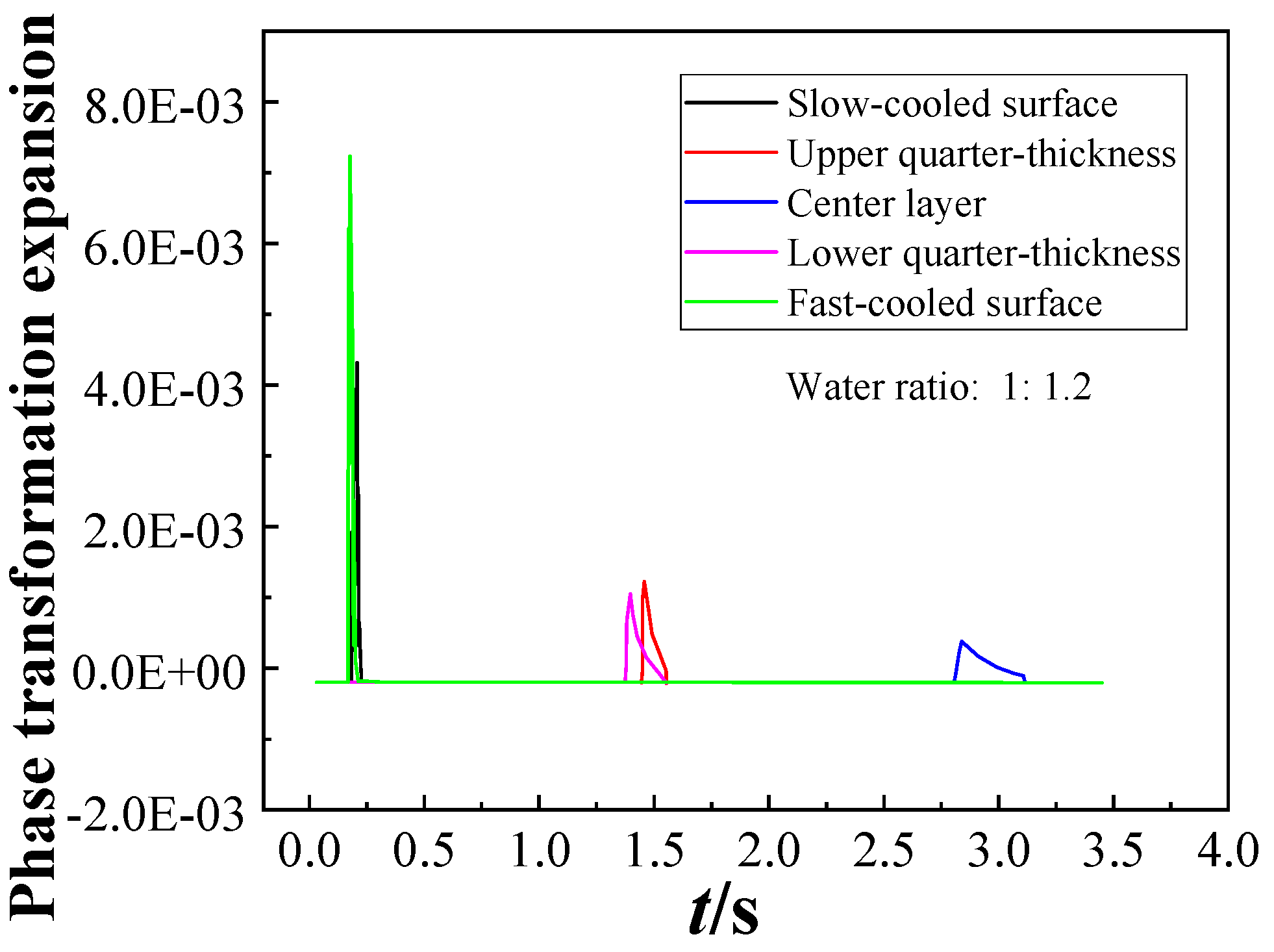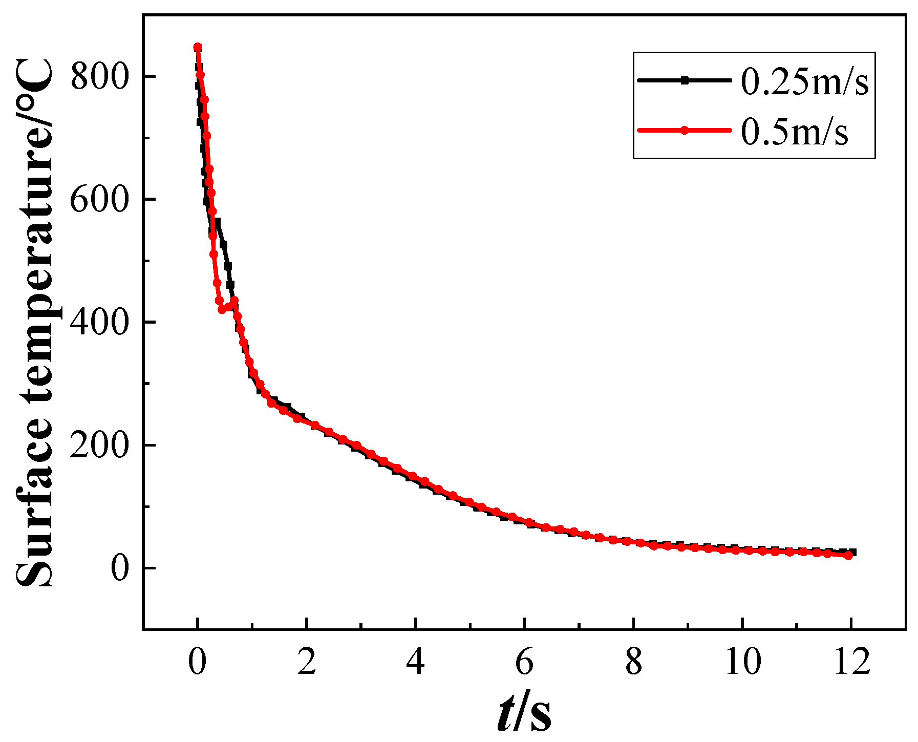 3.3.2. Influence of Water Ratio on the Quenching Cooling Temperature Variation