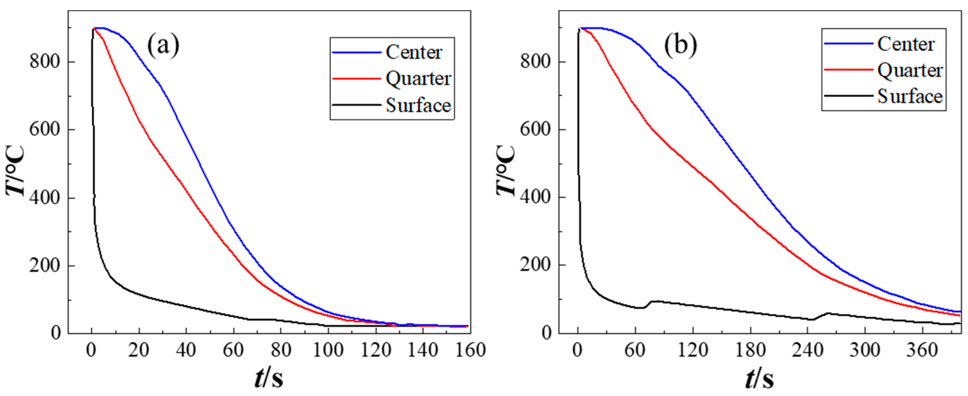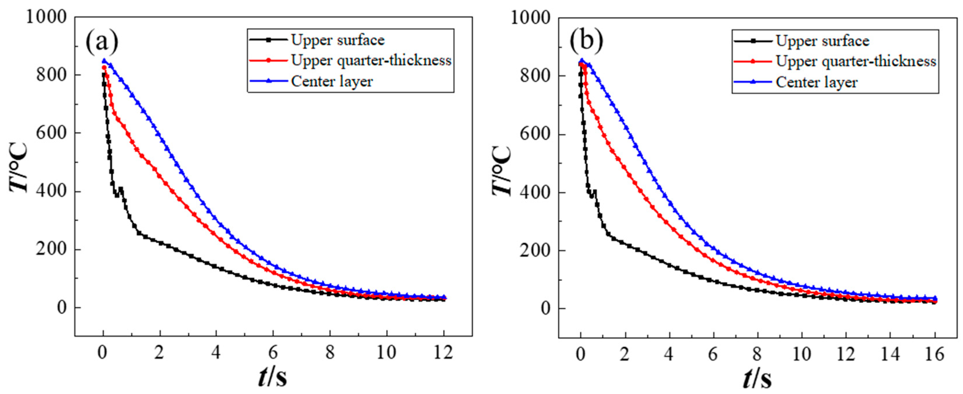3.3.1. Influence of Plate Thickness on the Quenching Cooling Temperature Variation Curves