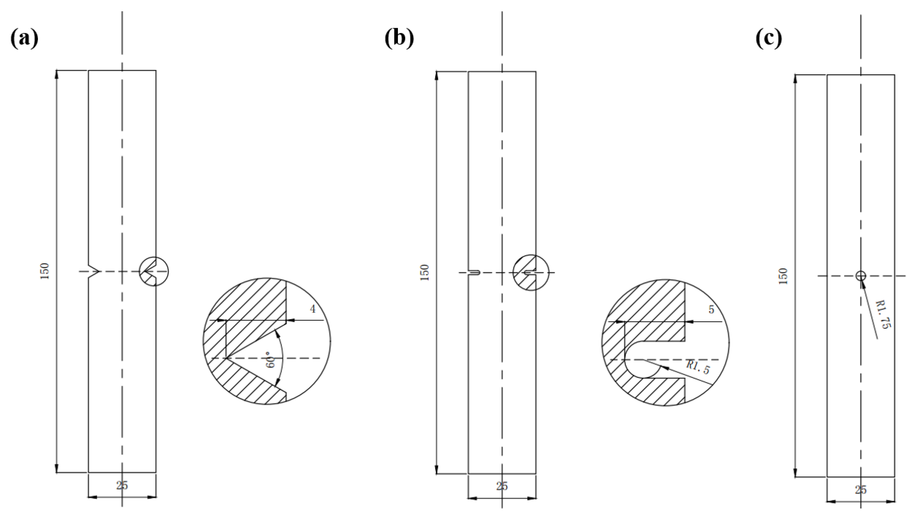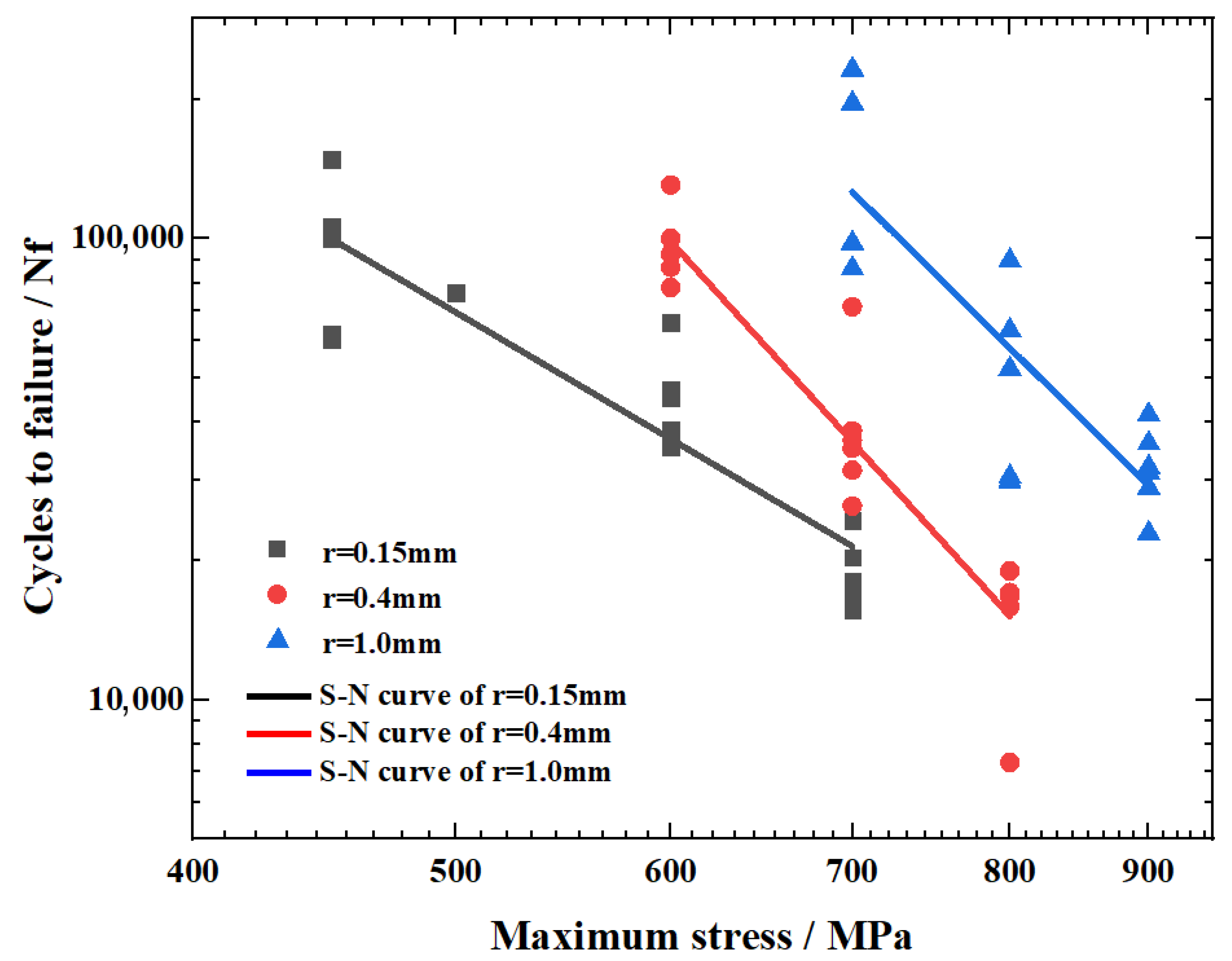 - Tang, Y.; Song, Y.; Yin, G.; Nie, Y. Notch fatigue life prediction model considering stress gradient influence depth and weight function. Metals 2023, 13, 539. [Google Scholar] [CrossRef]