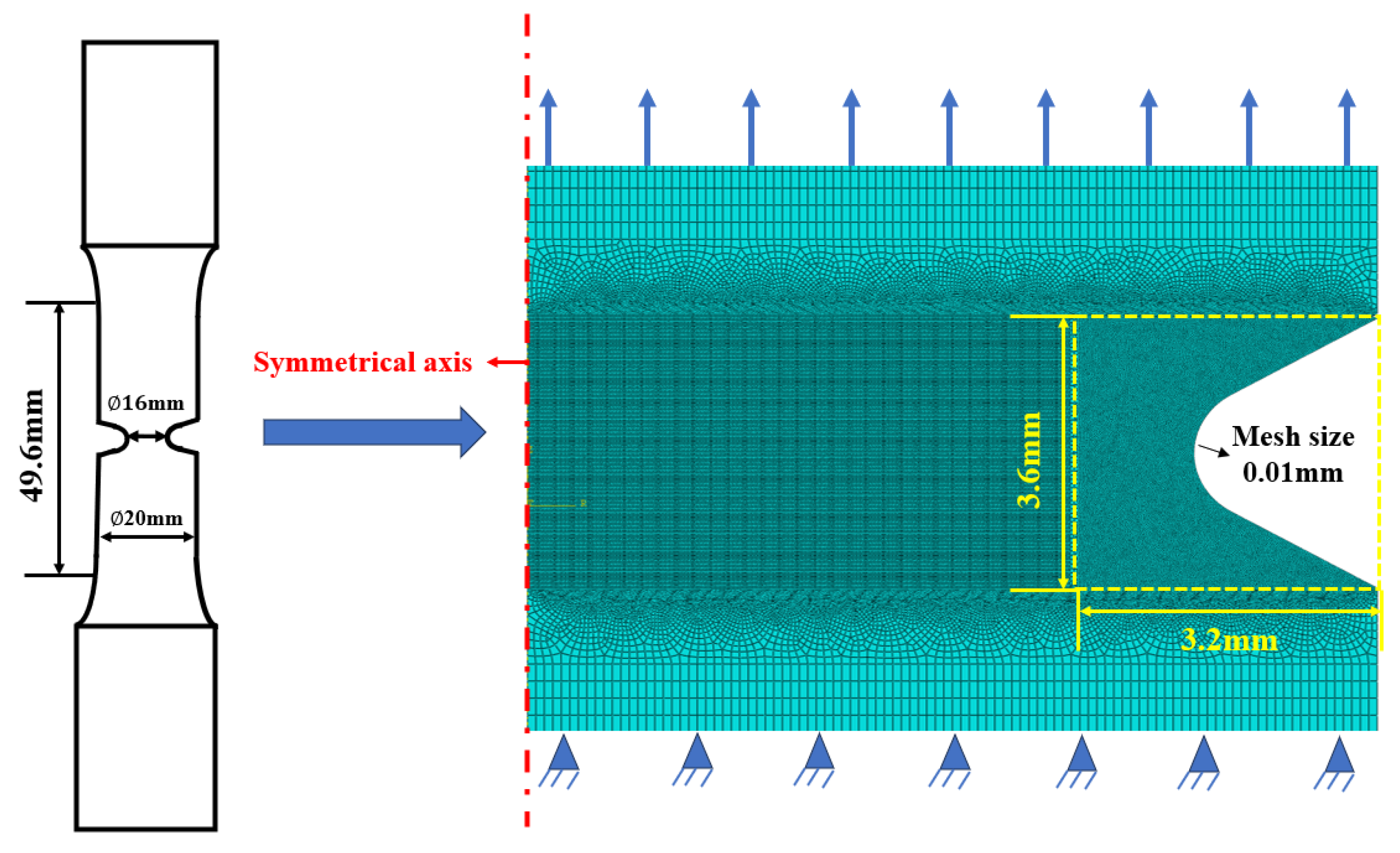 - Perform axisymmetric finite element analysis on notched specimens in ABAQUS to extract the maximum stress;